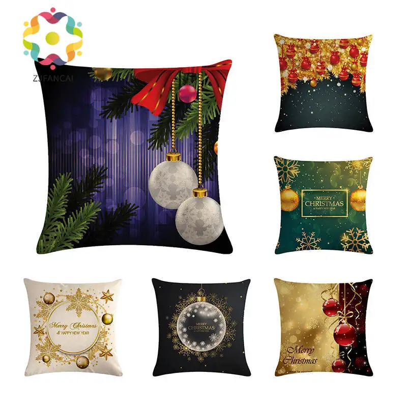 Рождественское украшение, наволочка, льняная мультяшная Рождественская декорация, серия шариков, льняная наволочка, наволочка для подушки