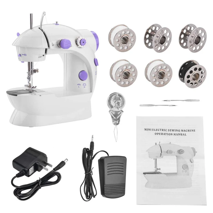 Портативный компактный мини-размер: швейная машина была разработана с мини-размером и одним типом строчки, который соответствует базовому домашнему швейному требованию. Он портативный и подходит для шитья нескольких светильник и тонких тканей.