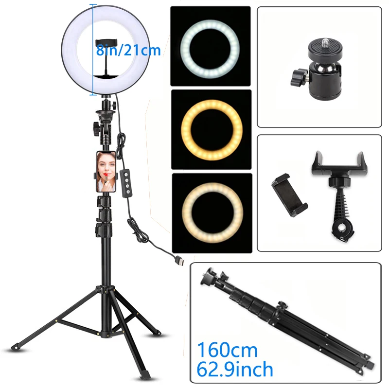 8 дюймов Led видео кольцевой светильник с 51 дюйм штатив-Трипод стойка держатель телефона селфи кольцо светильник для Youtube мобильного телефона в реальном времени светильник ing фон для фотосъемки