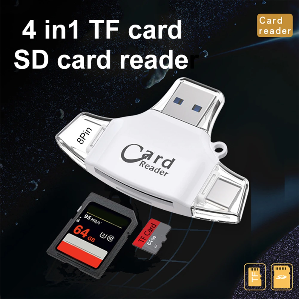 4 в 1 Micro USB Type-C TF безопасный цифровой кард-ридер высокая скорость