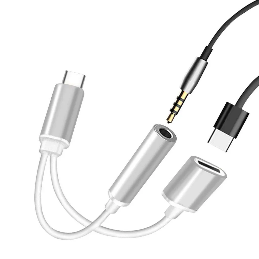 2в1 USB Type-C на 3,5 мм разъем AUX аудио сплиттер конвертер адаптер + зарядный кабель