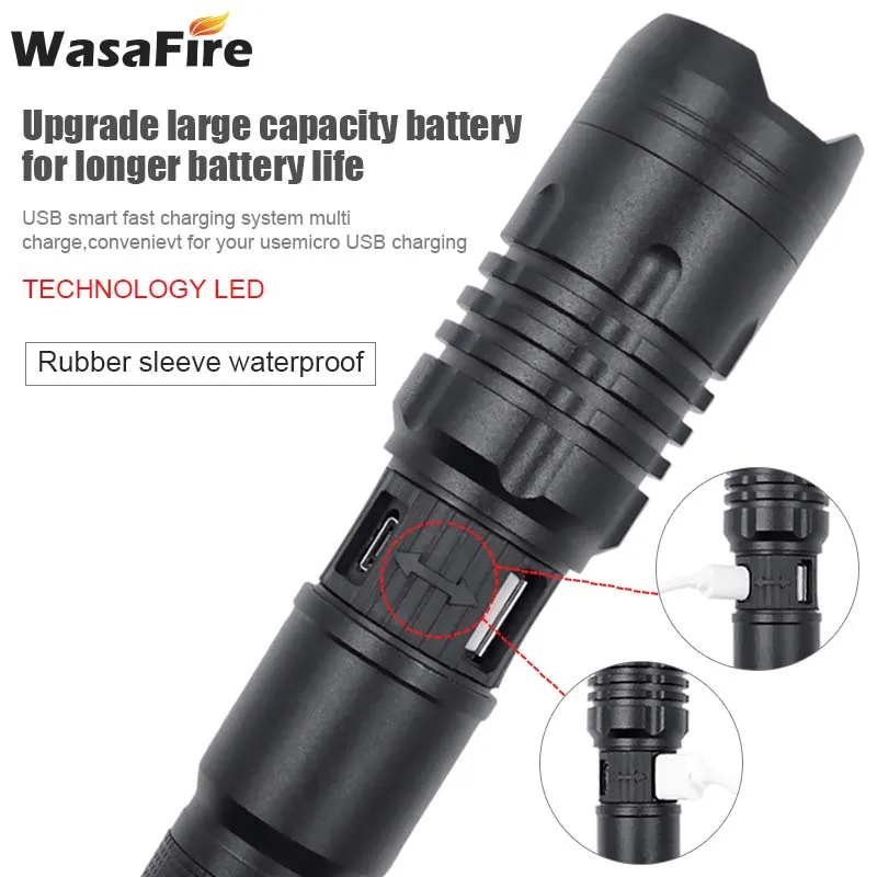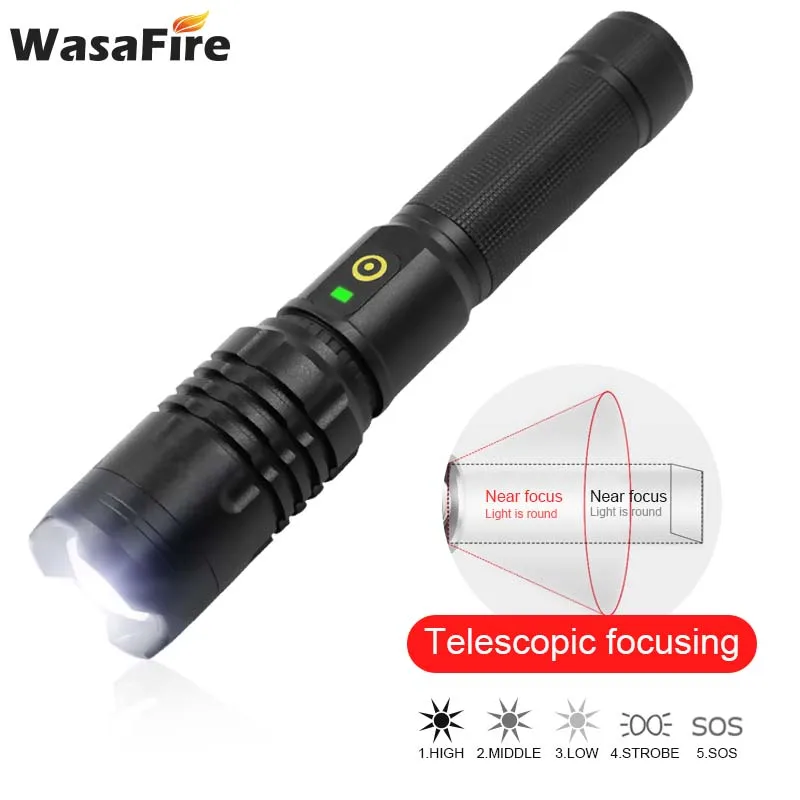 Супер Яркий 1200 люмен погрузчик 50 Телескопический фонарик 3 режима зарядка через USB светодиодный фонарь с приближением, охота и Рыбалка Фонарь Лампа