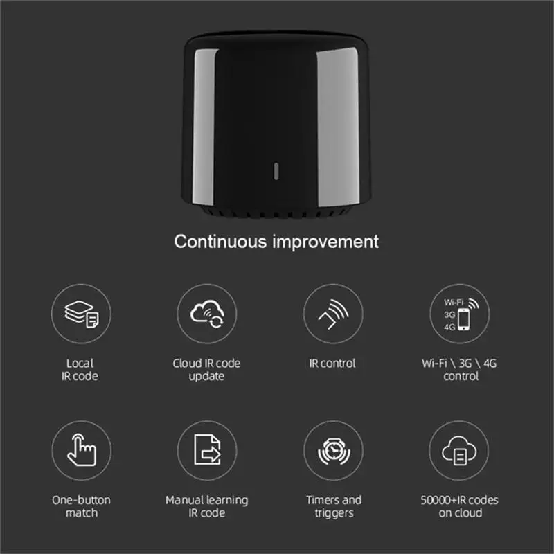 100% абсолютно новый и высококачественный портативный и прочный, легко носить с собой, легкий продукт является универсальным пультом ДУ для управления инфракрасными/радиочастотными устройствами через ваш смартфон (IOS и Android ) . Пользователи могут управлять устройствами в любом месте в любое время, как только они могут подключиться к мобильному Интернету (Wi-Fi или GPRS). Кроме непосредственного управления прибором, пользователи также могут устанавливать расписание, тему, чтобы устройства автоматически включали/выключали под разными темами. Например, вы можете создать «Режим презентации», чтобы последовательные действия (например, g. Закройте шторы & rarr; Включите компьютер & rarr; Включите проектор & rarr; Переключатель проектора на определенный канал) будет снят на 9a.m. Каждый день. Этот товар только что обновлен, и теперь он имеет некоторые новые функции: внешний вид изменился, увеличивает Охлаждающие отверстия, а также улучшает RF и IR приема и передачи функций чип был модернизирован, улучшает функции автоматического поиска и подключения Wi-Fi. Совместимость с "e-Control" и зарубежной версией "intelligent home" функция сцены является более совершенной, лучше совместима с другими смарт-продуктами Broadlink и продуктами, содержащими Bola DNA kit, такими как Tmall Genie, некоторые кондиционеры Midea и водонагреватели и т. Д. Увеличили основание для свободной подвески