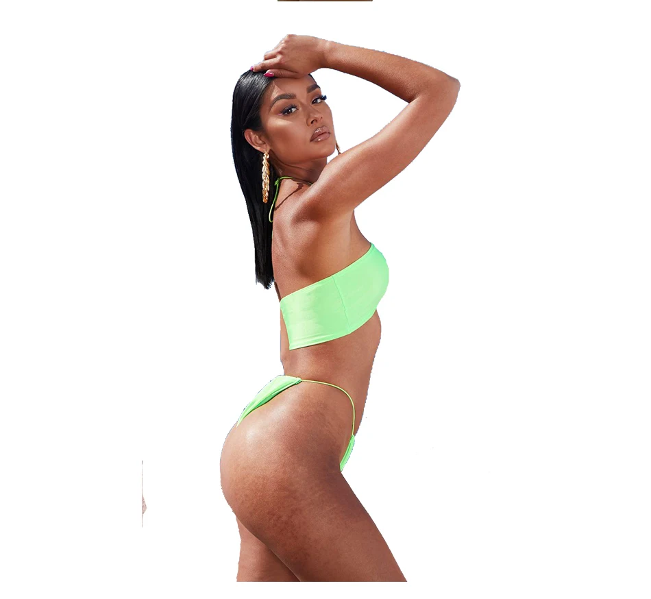 Новинка 2020, сексуальный женский купальник с вырезом спереди, без бретелек, без косточек, с открытой спиной, бандо, купальный костюм, S-L, для девочек, однотонный комплект бикини
