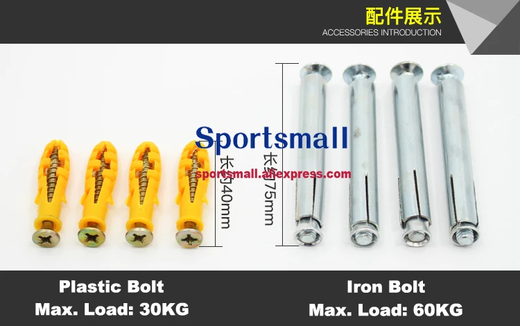 Максимальная нагрузка: менее 30-60 кг (пластиковый болт или железный болт на выбор)