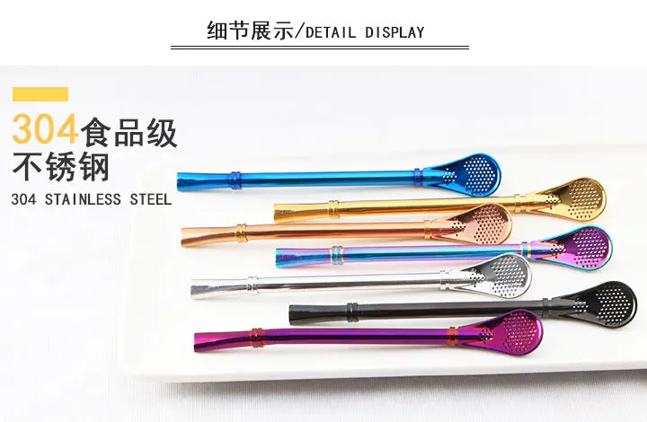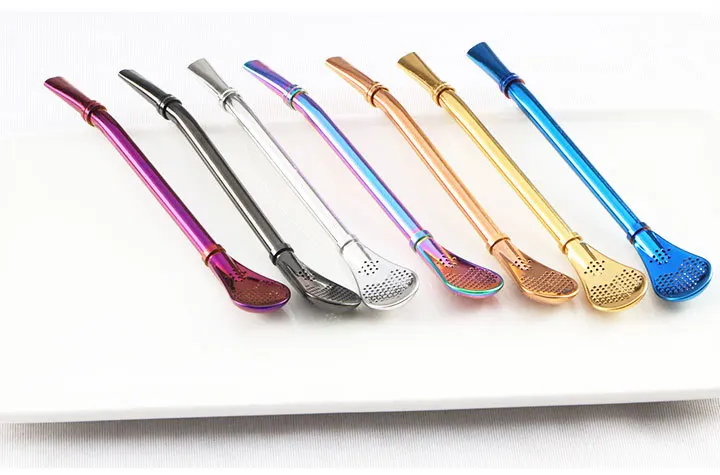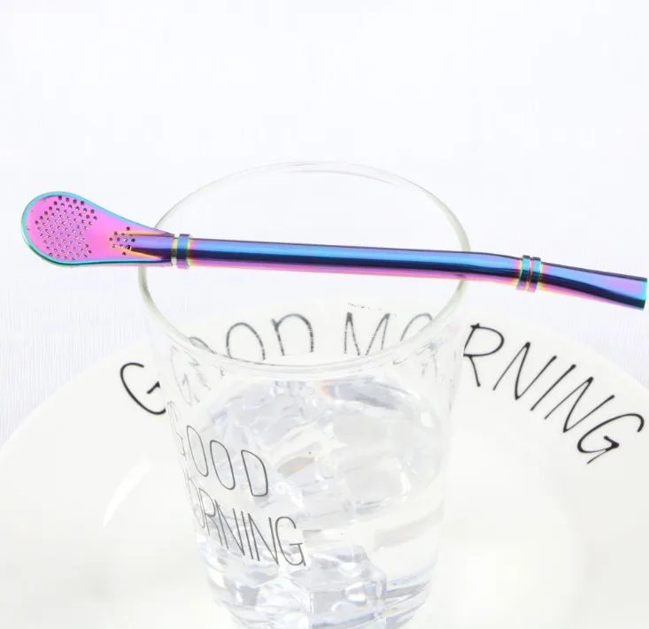 Портативный 304 Нержавеющая сталь солома фильтр ложка молока Чай ложка для размешивания кофе Цвет соломы фильтр ложка Кухня питания