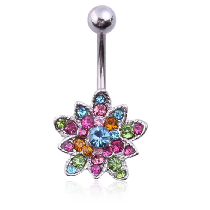 Женское кольцо с пуговицами для живота, Хрустальная подвеска ввиде цветка лотоса, Дамский пупок, пирсинг, ювелирное изделие S55