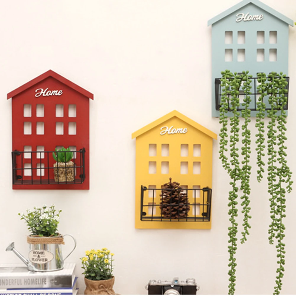 Деревянный дом Стиль Настенный стеллаж для хранения держатель Органайзер Домашний декор