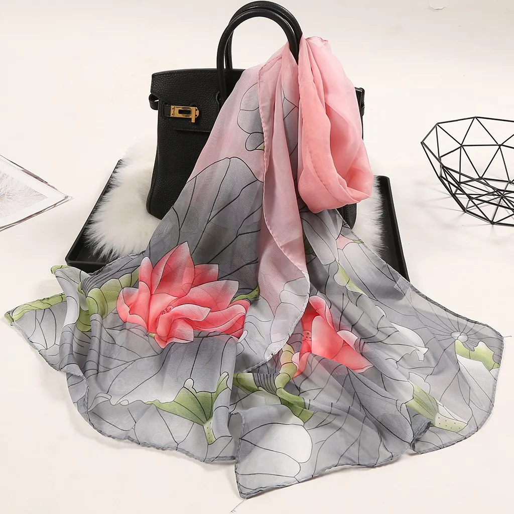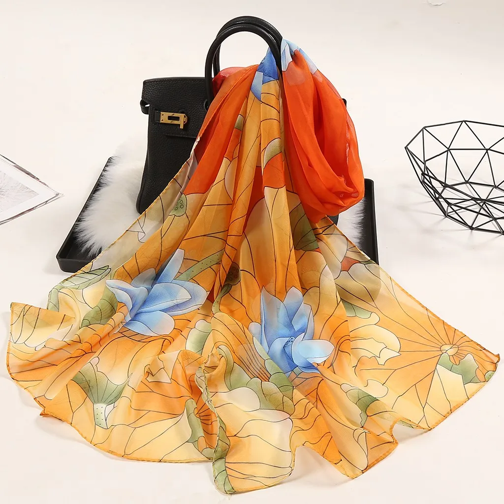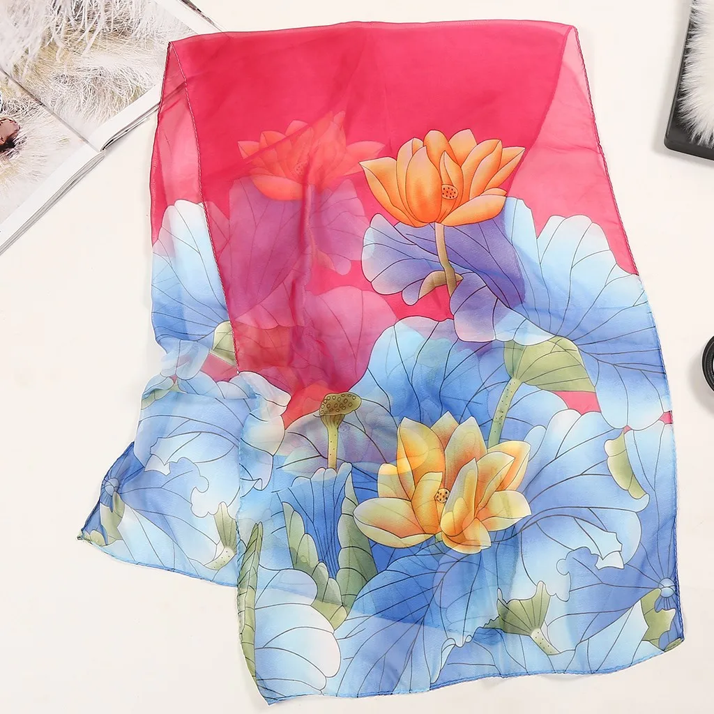 160*50 см Женский цветочный принт длинный мягкий шарф Имитация шелковый платок шарфы