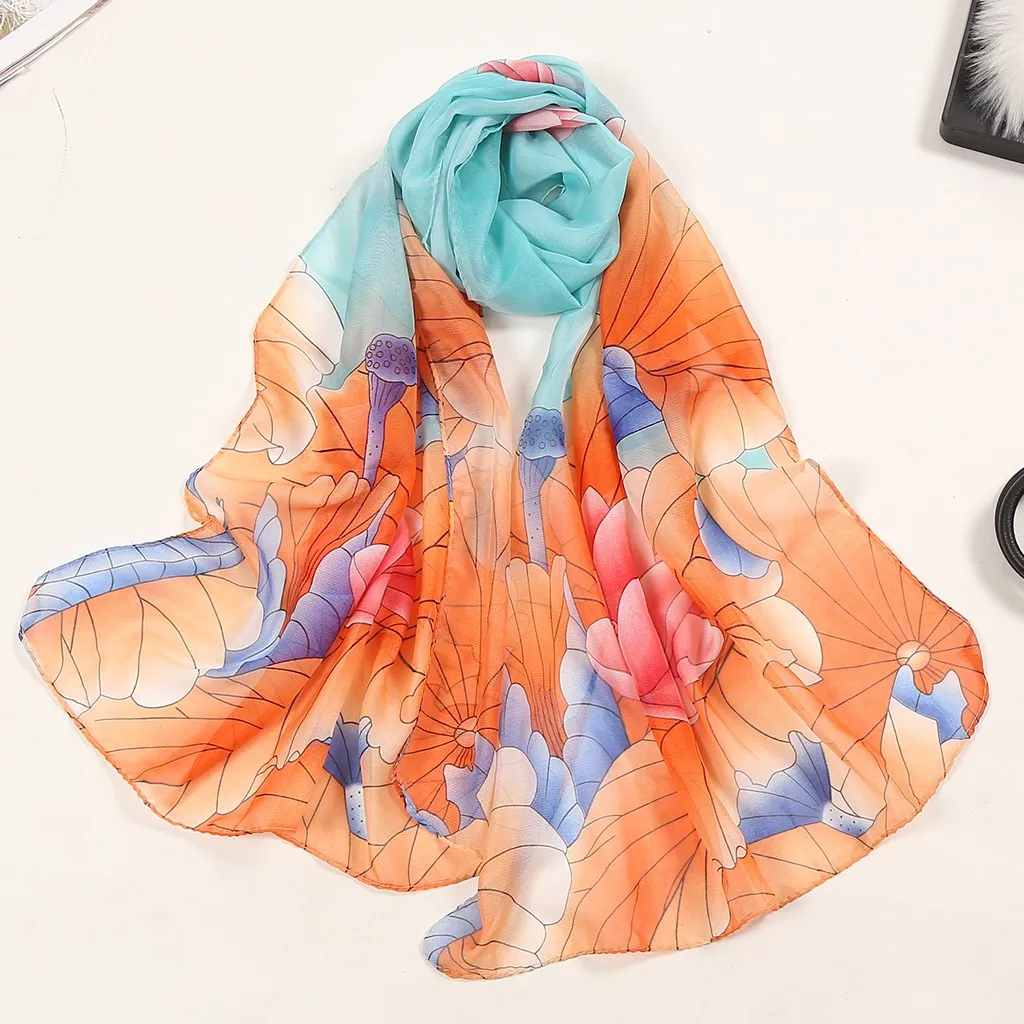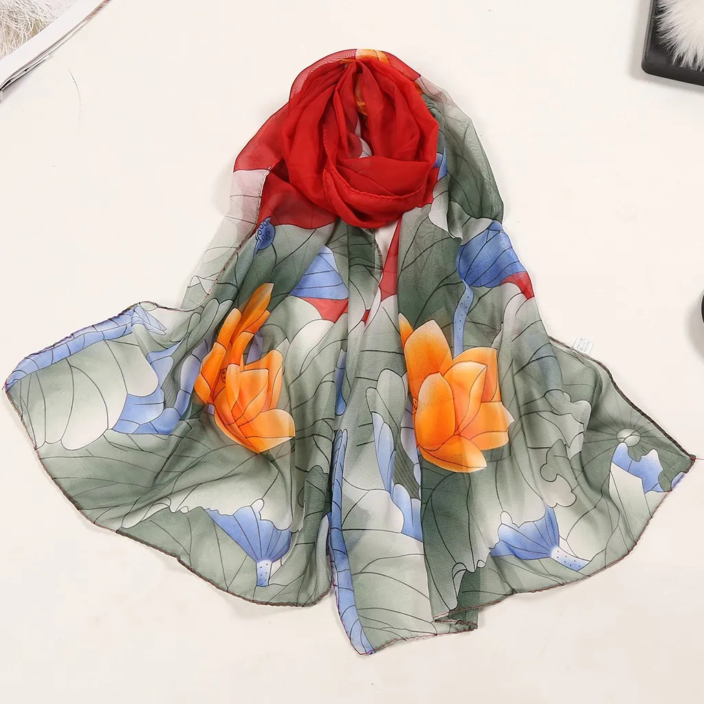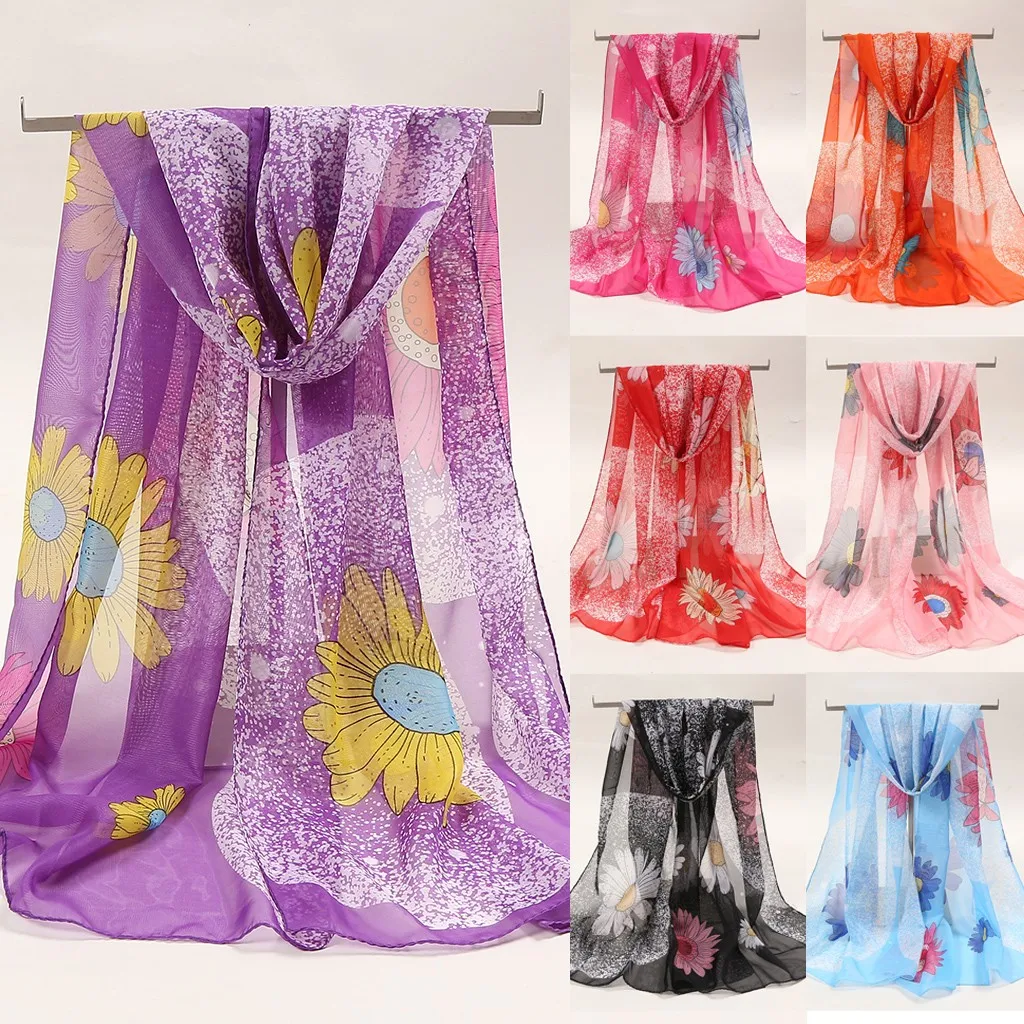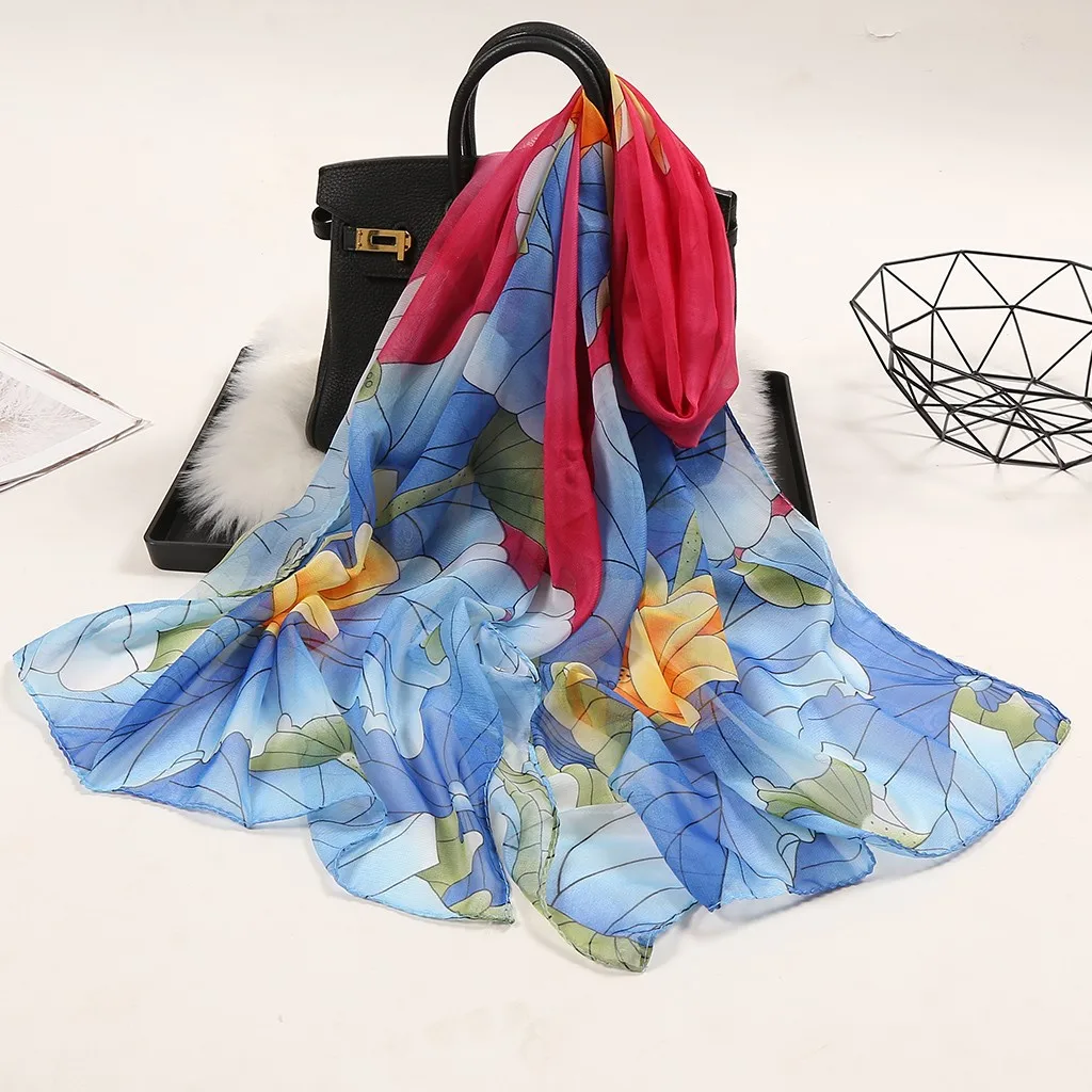 160*50 см Женский цветочный принт длинный мягкий шарф Имитация шелковый платок шарфы