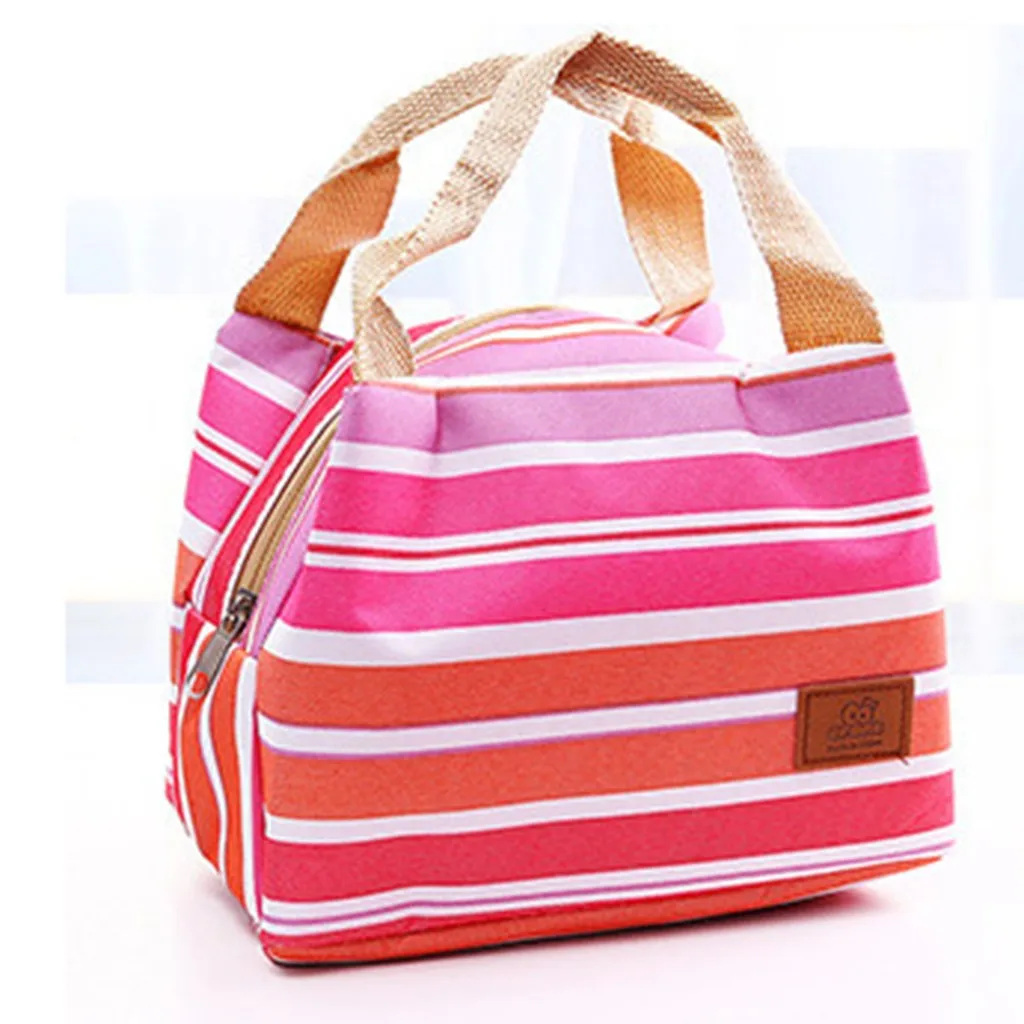 Модный портативный полосатый ланч-фуд свежий мешочек офисный напиток для пикника холодная сумочка