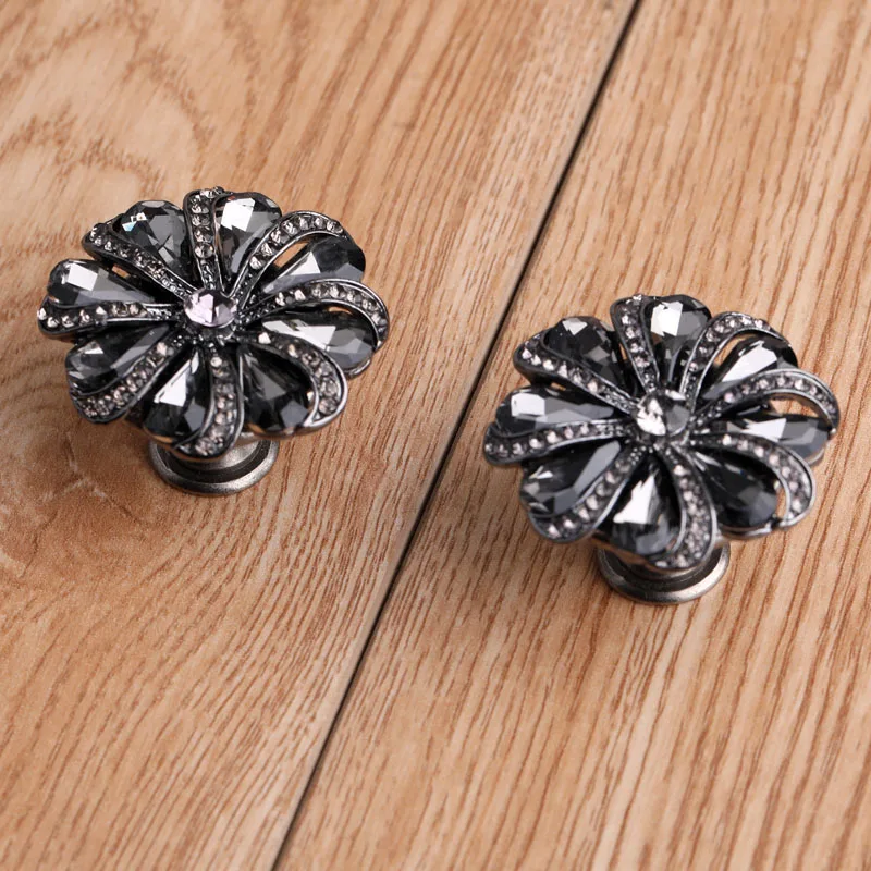 Заботливая мода коричневый черный цветок Кристалл золото античный Железный ящик винный шкаф ручка