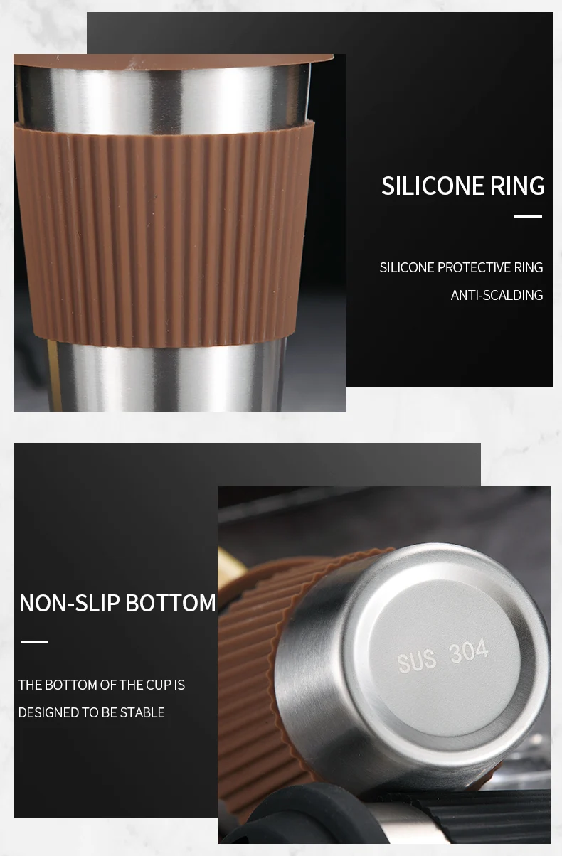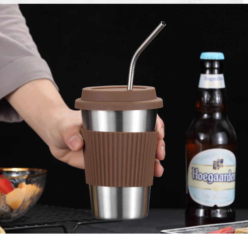 WORTHBUY 304 нержавеющая сталь чайная кофейная кружка с силиконовой крышкой противоскользящая чашка для воды кухонная посуда для напитков Нескользящая чайная кофейная чашка