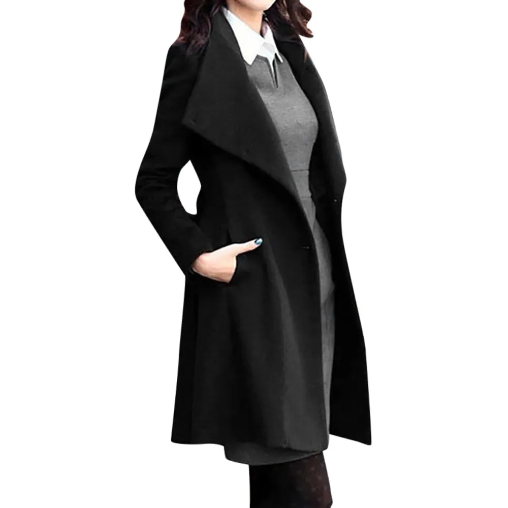Женское зимнее шерстяное пальто с отворотом, Тренч с длинным рукавом, верхняя одежда