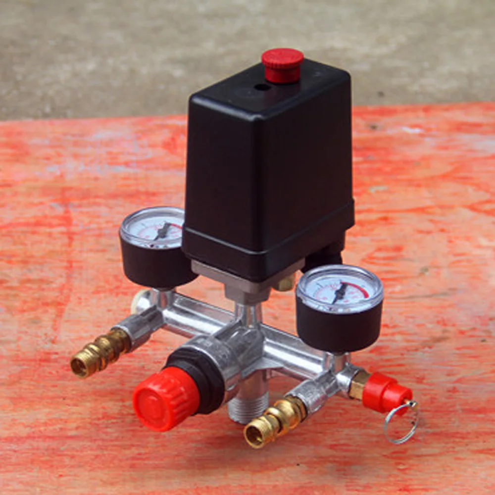 *Air Compressor Pump Pressure Control Switch Valve Manifold Regulator w/ Gauges