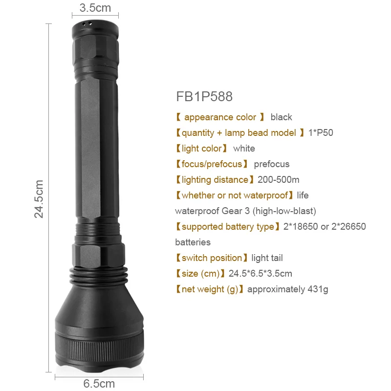 Светодиодный фонарик-1 шт. (аккумулятор и зарядное устройство в комплект не входят)
