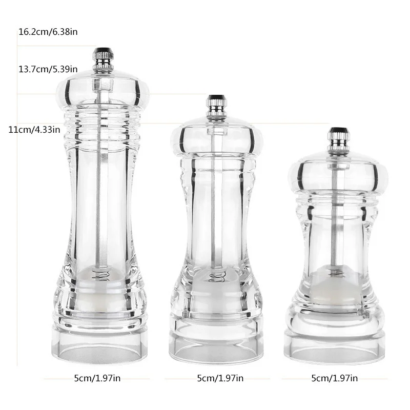 Choose from 3 sizes of acrylic pepper grinders to suit your needs.