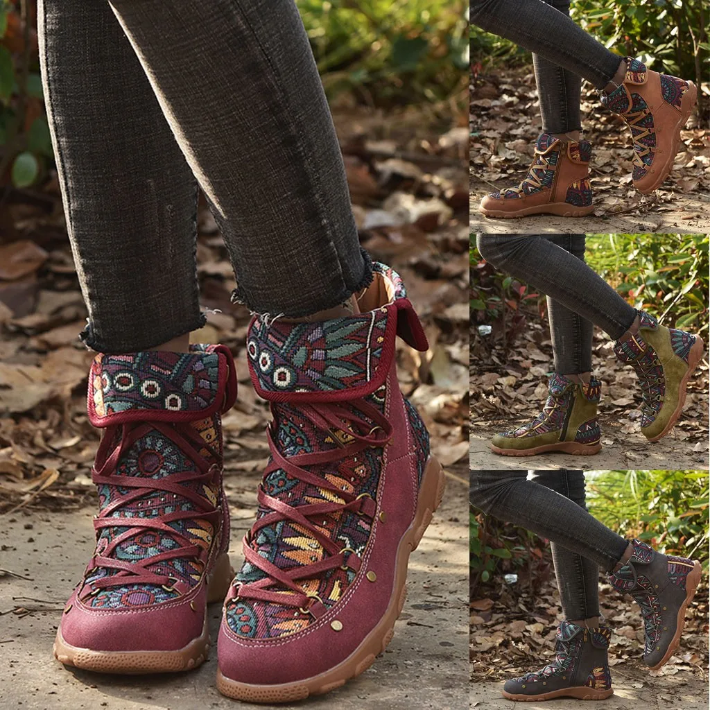 Женские теплые полусапожки в стиле ретро с вышивкой на плоской подошве и на молнии; обувь с круглым носком