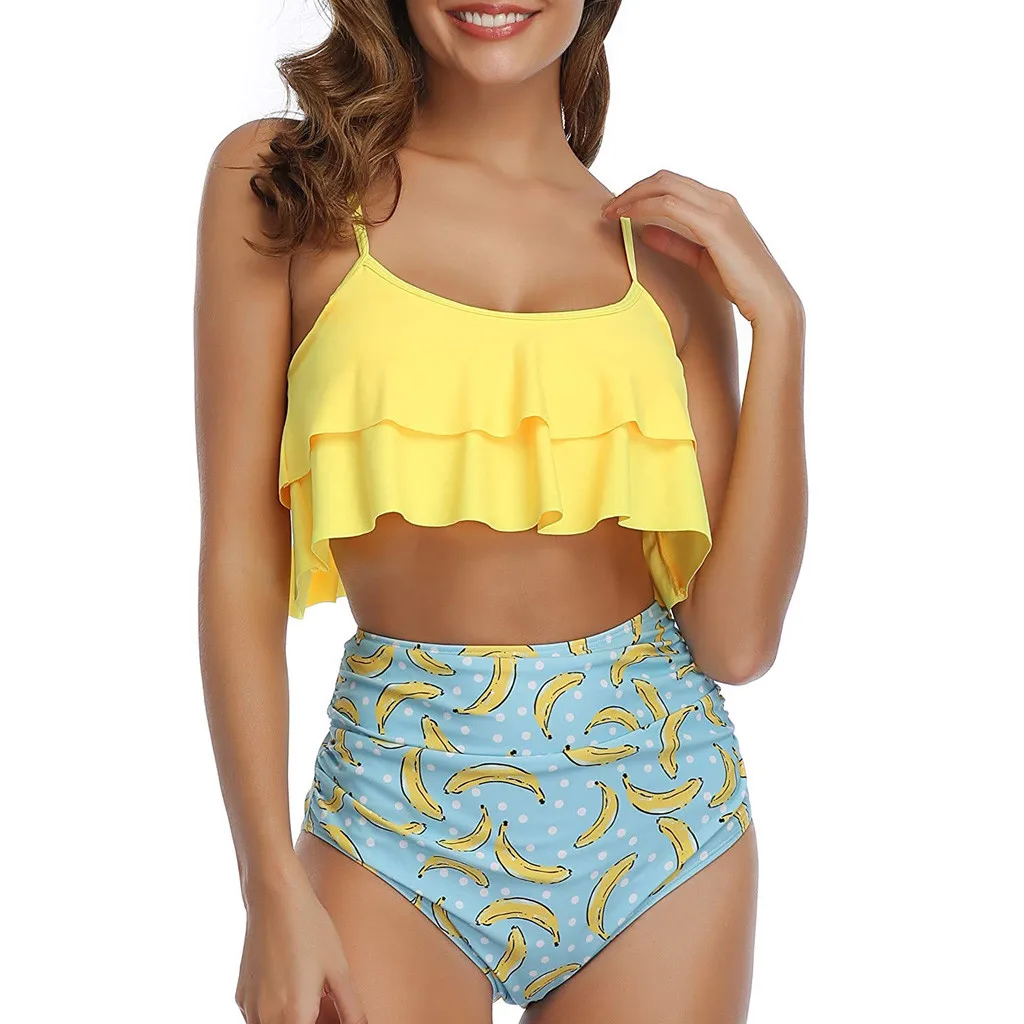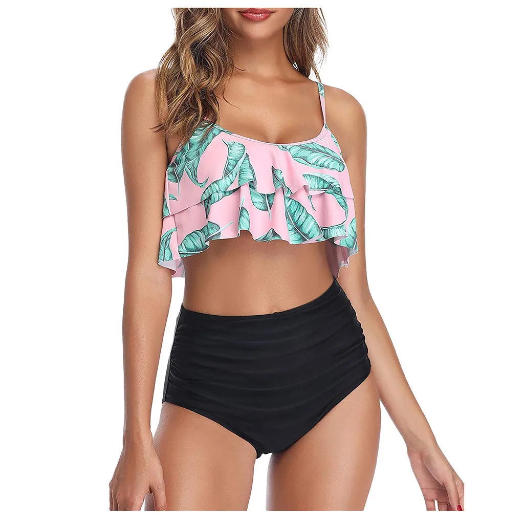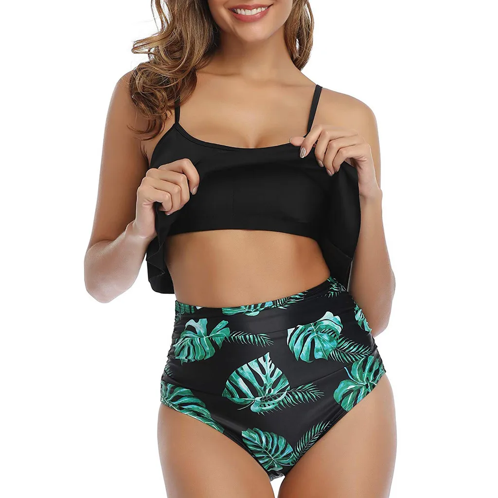 Женский купальник-бикини с принтом дерева и высокой талией, пуш-ап, пляжная одежда, купальник