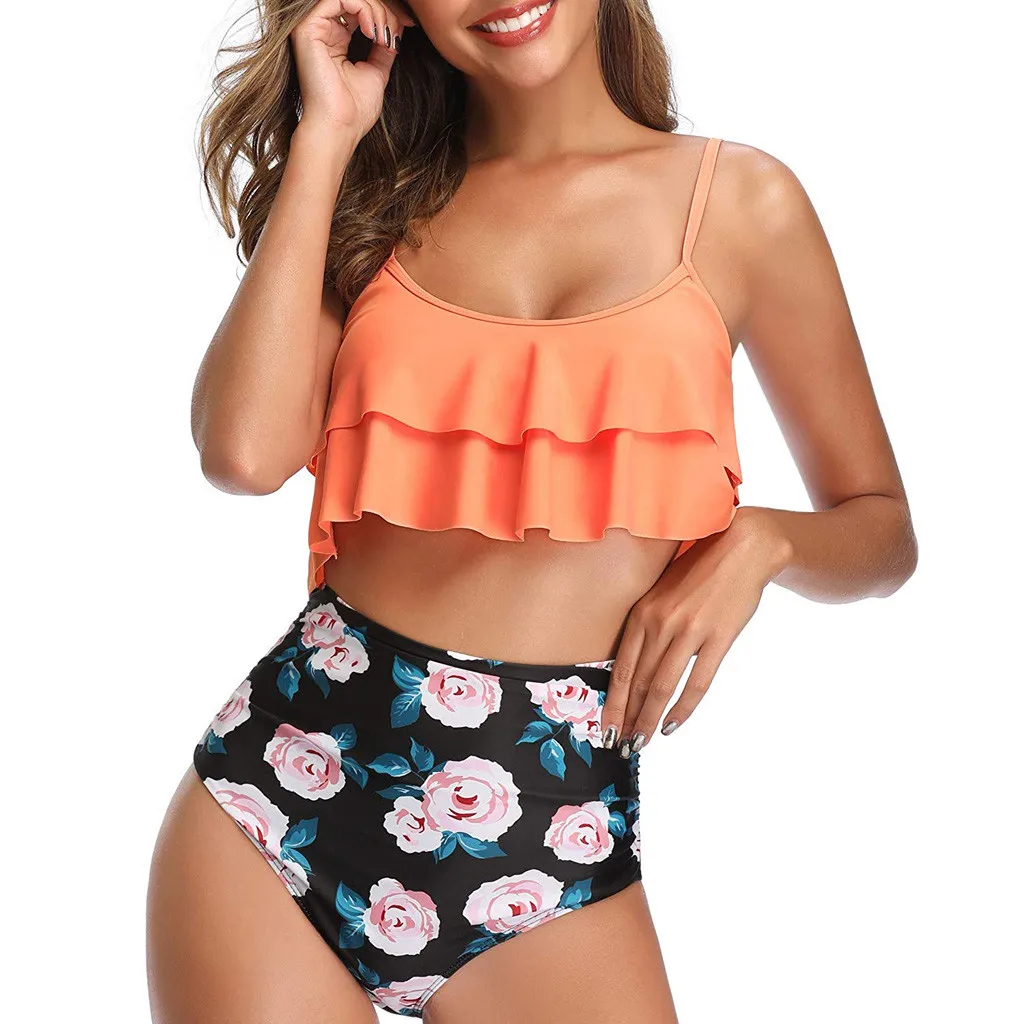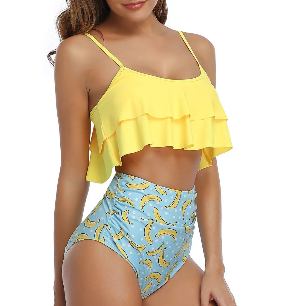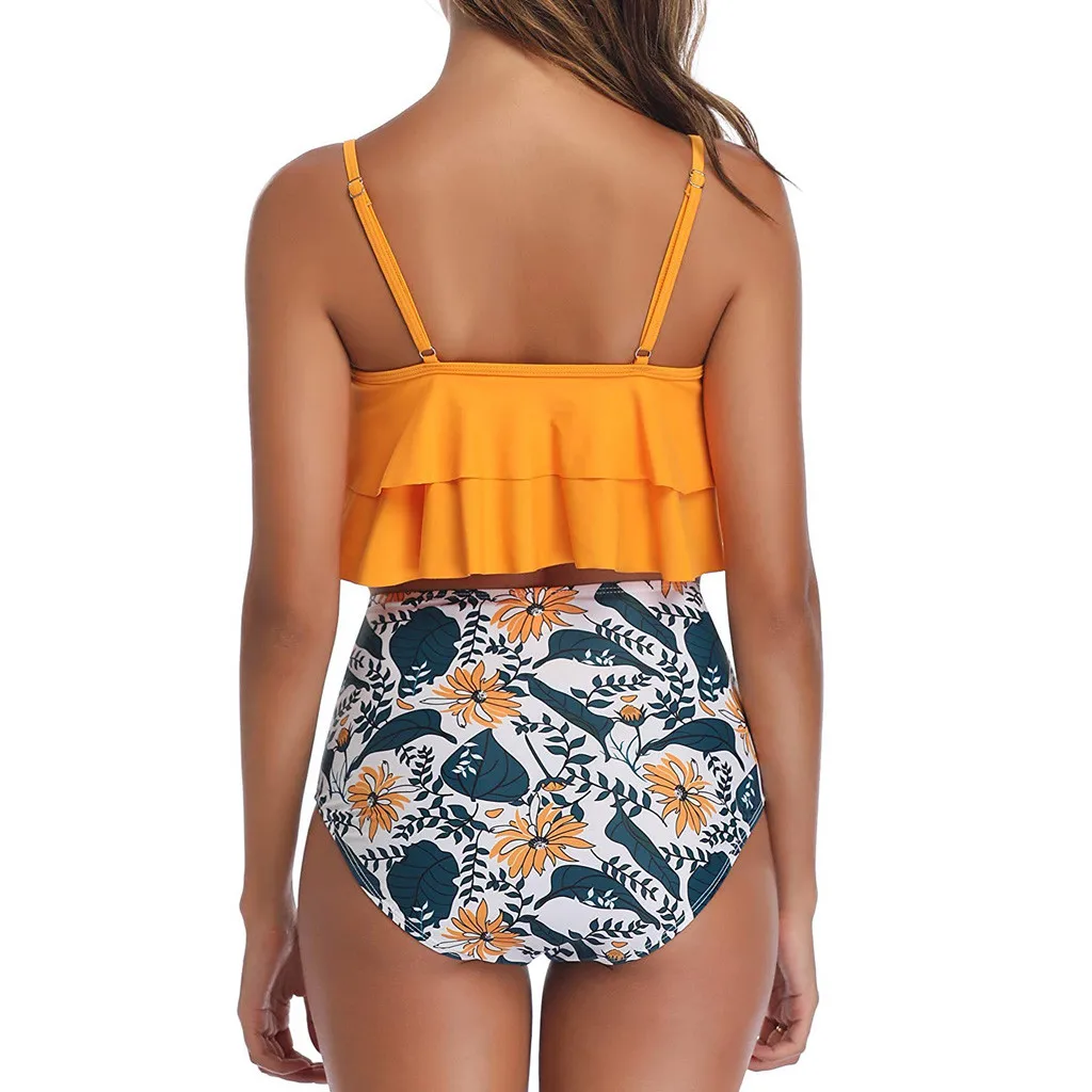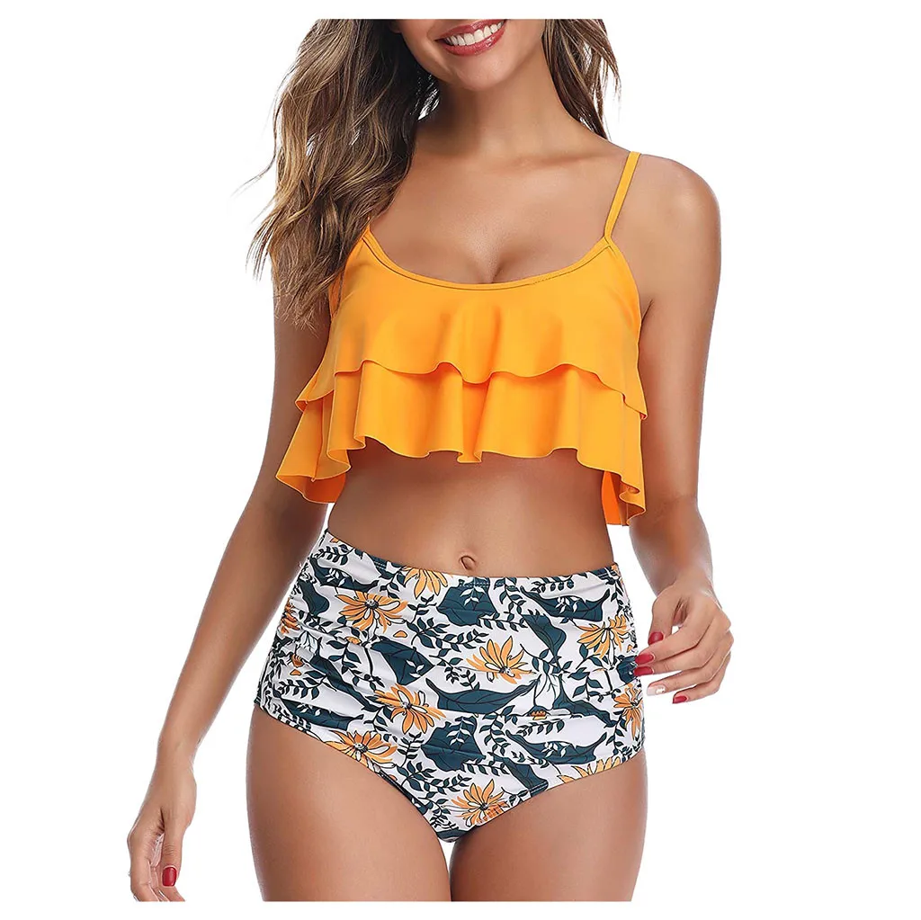 Женский купальник-бикини с принтом дерева и высокой талией, пуш-ап, пляжная одежда, купальник