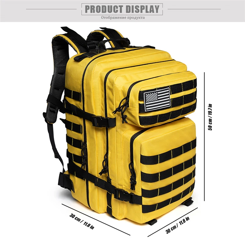 Тактический рюкзак будет брать все, что вы бросите на него. Изготовлен из прочного высокой плотности 900D, это защита от влаги и rip доказательство со множеством кармашков для всех комплект на свой вкус. Емкость 50 л с несколькими отделениями, мешочками и карманами на молнии Высокого качества на молнии и обновленная Экстра-прочный пластиковый защитный оборудования Специальный отсек для ноутбука/устройства (17 '') Дизайн и система MOLLE с передней и боковой тесьмой для дополнительных вложений Эргономичные регулируемые компрессионные ремни с крючками и петлями для удобной переноски Рюкзак открывается на плоской подошве до 180 градусов для легкой упаковки/распаковки Все отсеки имеют двухсторонние отверстия, штормовые щитки и тяговые вкладки для легкого доступа Защита от разрывов и водонепроницаемость Походный рюкзак Размер: 50 см x 30 см x 30 см