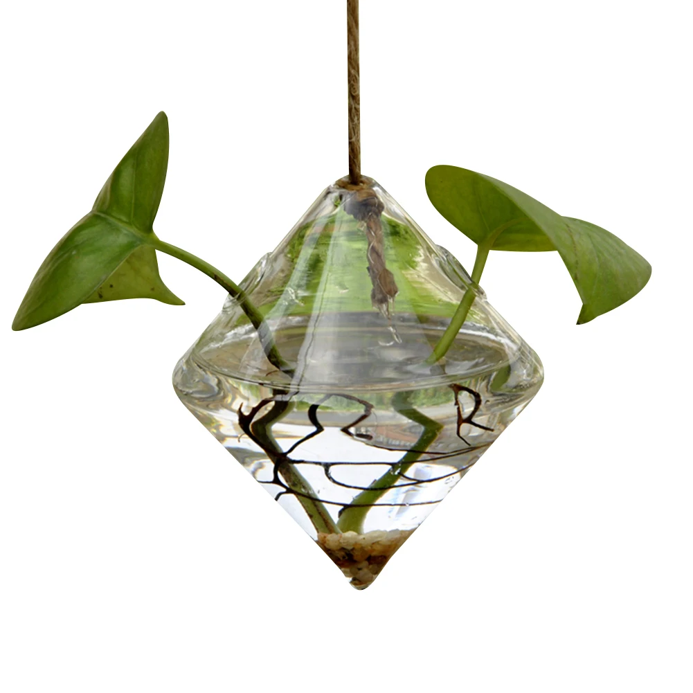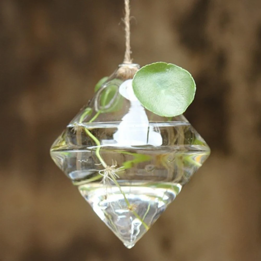 Висячие прозрачные Ромбы, треугольники, стеклянный цветочный горшок, вазы, садовый декор
