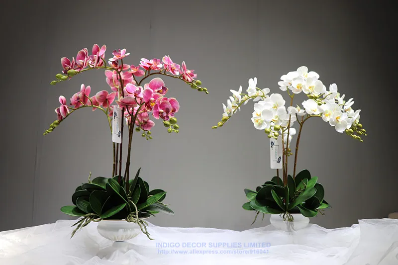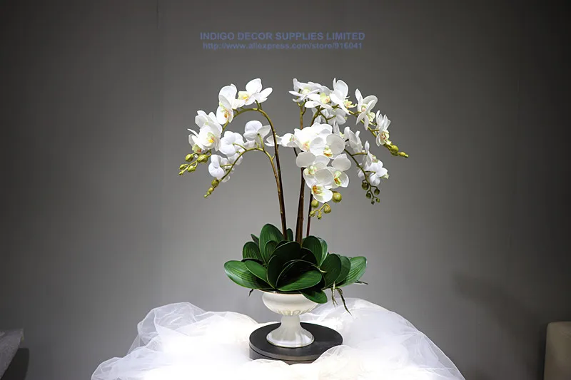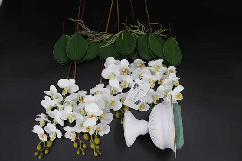 Общая длина цветка: 6 шт. 65 см Длина листьев: 18 см (9 стеблей) Материал цветка: настоящий сенсорный материал Количество цветов: 6 стеблей орхидеи, 9 стволовых листьев Цена на железную вазу