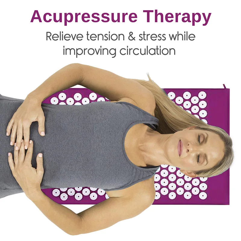 Тип изделия: Массажный коврик для йоги Применимый Пол: унисекс, мужчины и женщины Цвет: черный, фиолетовый Материал: губка + хлопок + бедра Функция: снимает стресс, боль в спине и шее Посылка: 1 Массажный коврик для Йоги + подушка для йоги + сумка для йоги