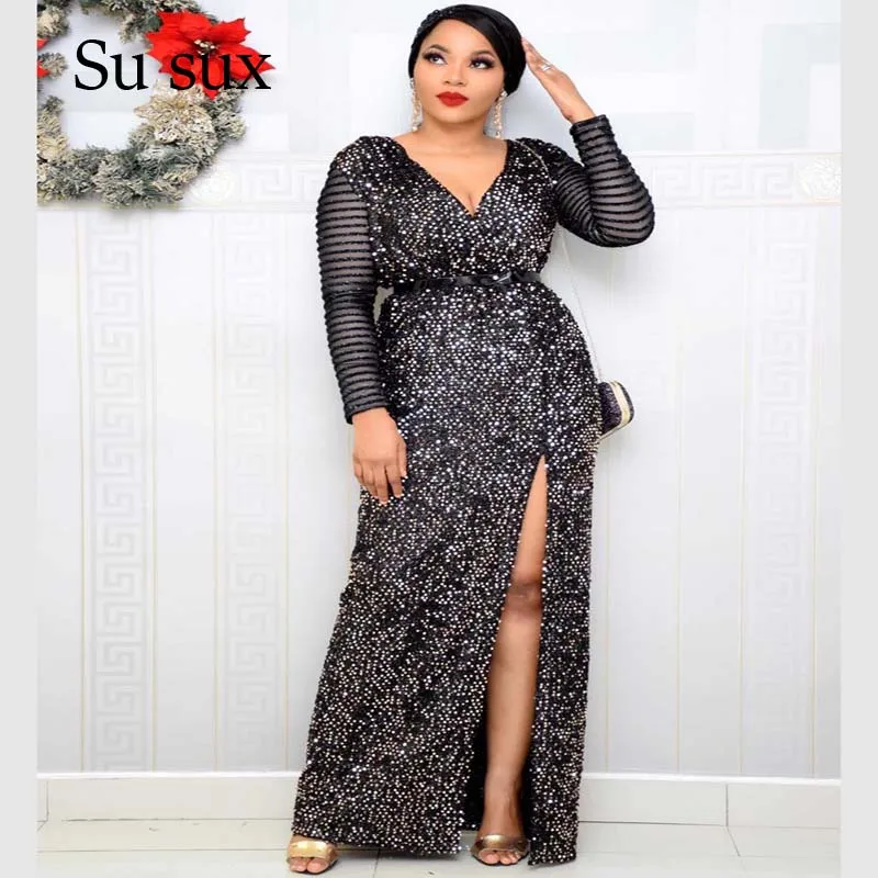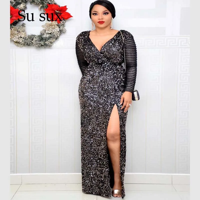 Бархатное Вечернее Платье макси с блестками для женщин Vestidos облегающее Бандажное длинное вечерние платье с глубоким v-образным вырезом длинный халат с рукавом и поясом Femme