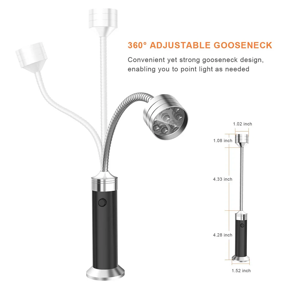 Гибкая гусиная шея 11 см может быть отрегулирована на 360 градусов, что позволяет точно расположить луч туда, где вам это нужно, и осветить каждый дюйм поверхности гриля.