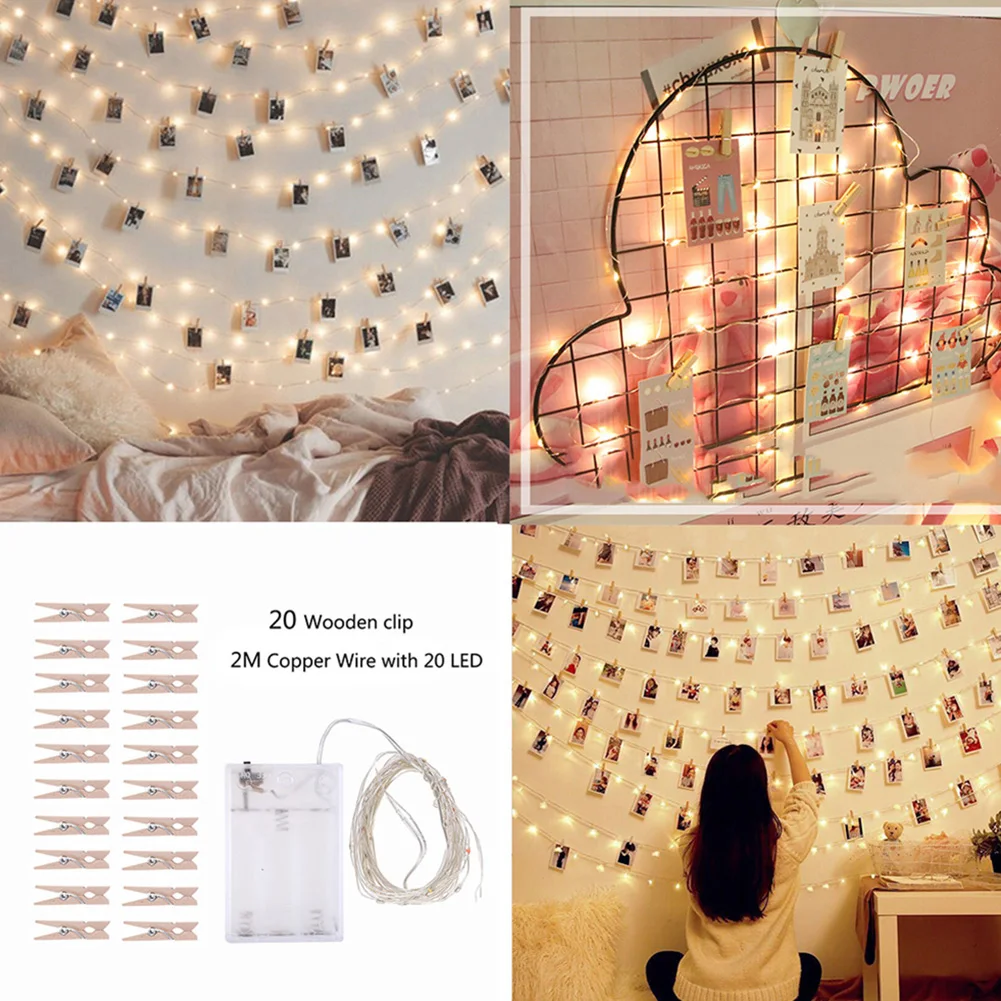 2/4 м держатель для фото светодиодные струны светильник для рождественской свадебной вечеринки украшение для дома