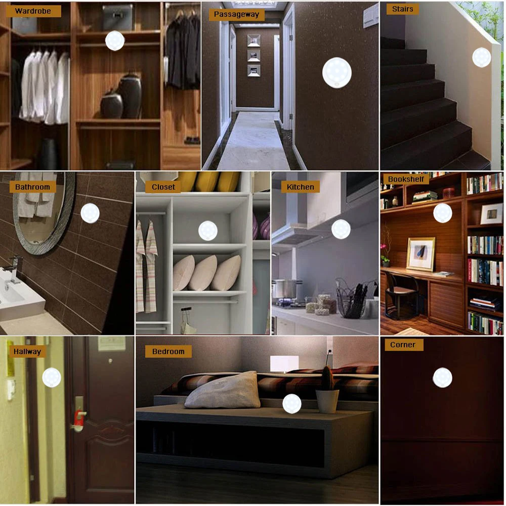 Движения Сенсор светильник Датчик движения работает как маленькие «охранники», обеспечивает автоматический, свободные руки способ защиты вашего дома в помещении и на открытом воздухе. Светильник в спальню, лестницу, прихожую, шкаф или вход в дом, где светильник находится слишком далеко от двери. Не оставляйте свет без необходимости бегать по электрической накладной.