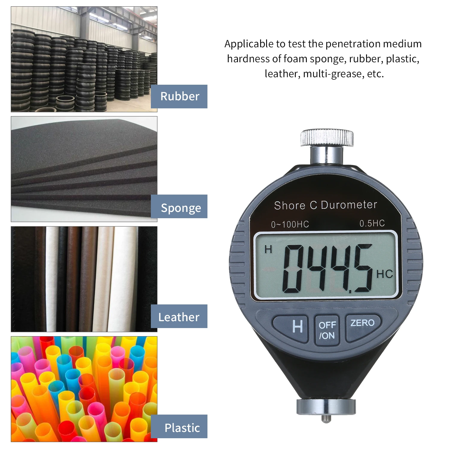 Wide Application --- It is widely used to measure the hardness of various soft materials such as rubber, silica gel, leather, multi-grease, tire and plastic.
