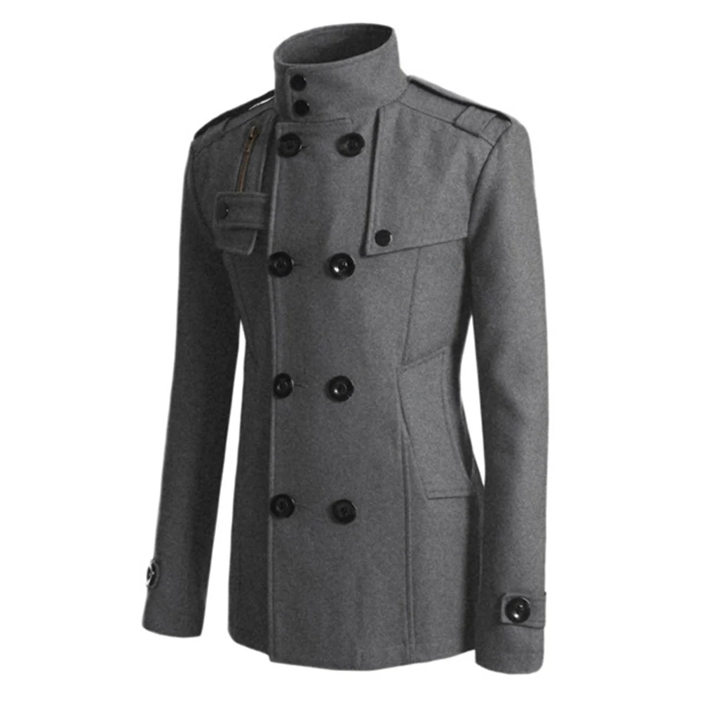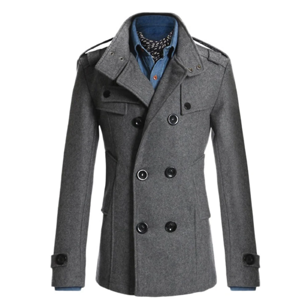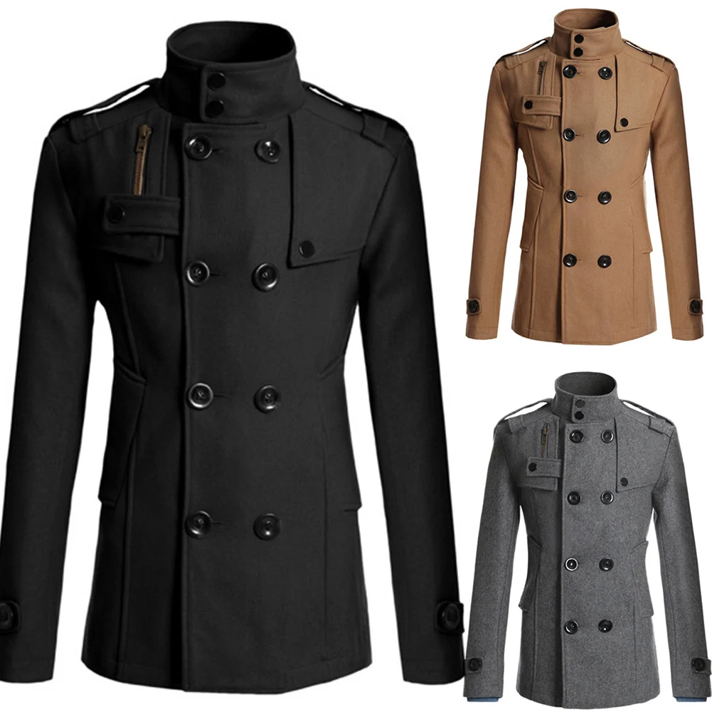 Новинка 2020, мужской зимний теплый Тренч, шерстяное пальто, приталенная и подходящая повседневная куртка-холодильник, однотонная двубортная парка с воротником-стойкой