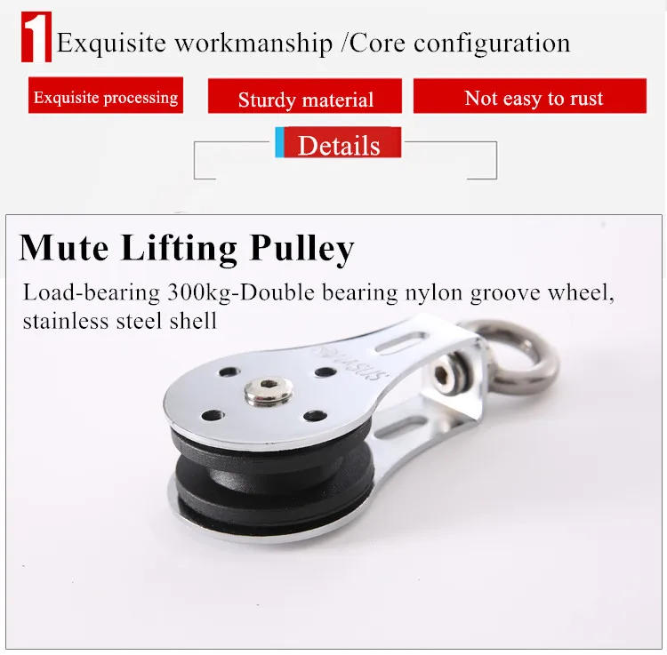 Шкив: нейлоновое канавочное колесо Стяжка: EVA Кронштейн штанги: сталь Веревка: нейлон