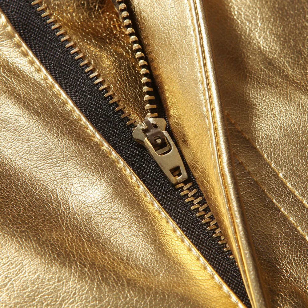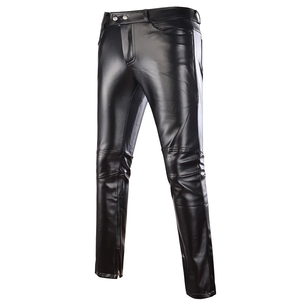 Мужские обтягивающие брюки из искусственной кожи, глянцевый золотистый Серебристый Черный, мотоциклетные Мужские штаны для ночных клубов, сцены, для певцов, танцоров, повседневные брюки