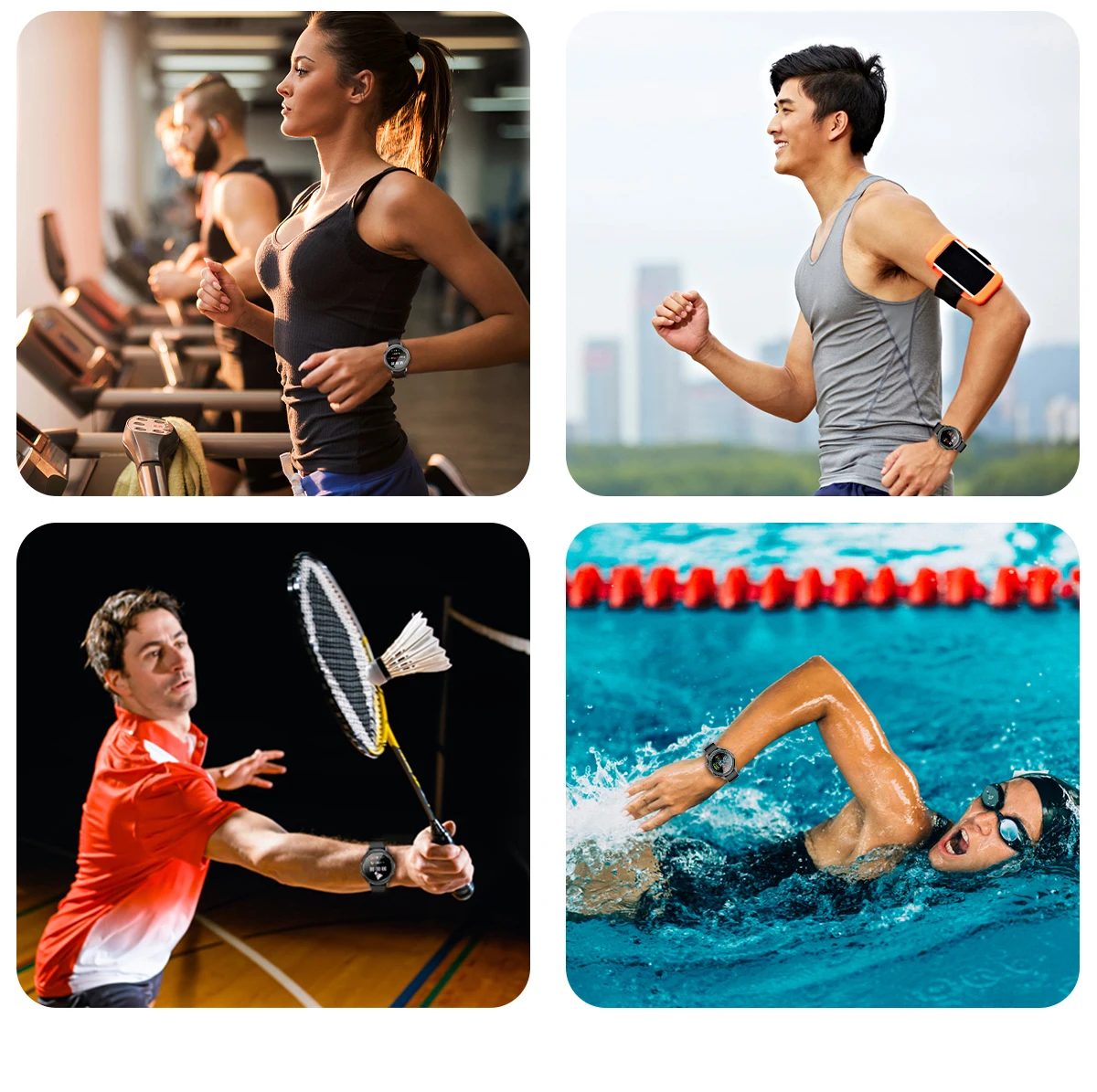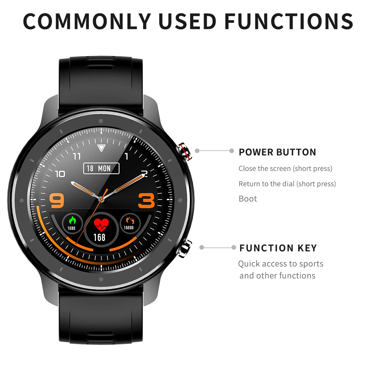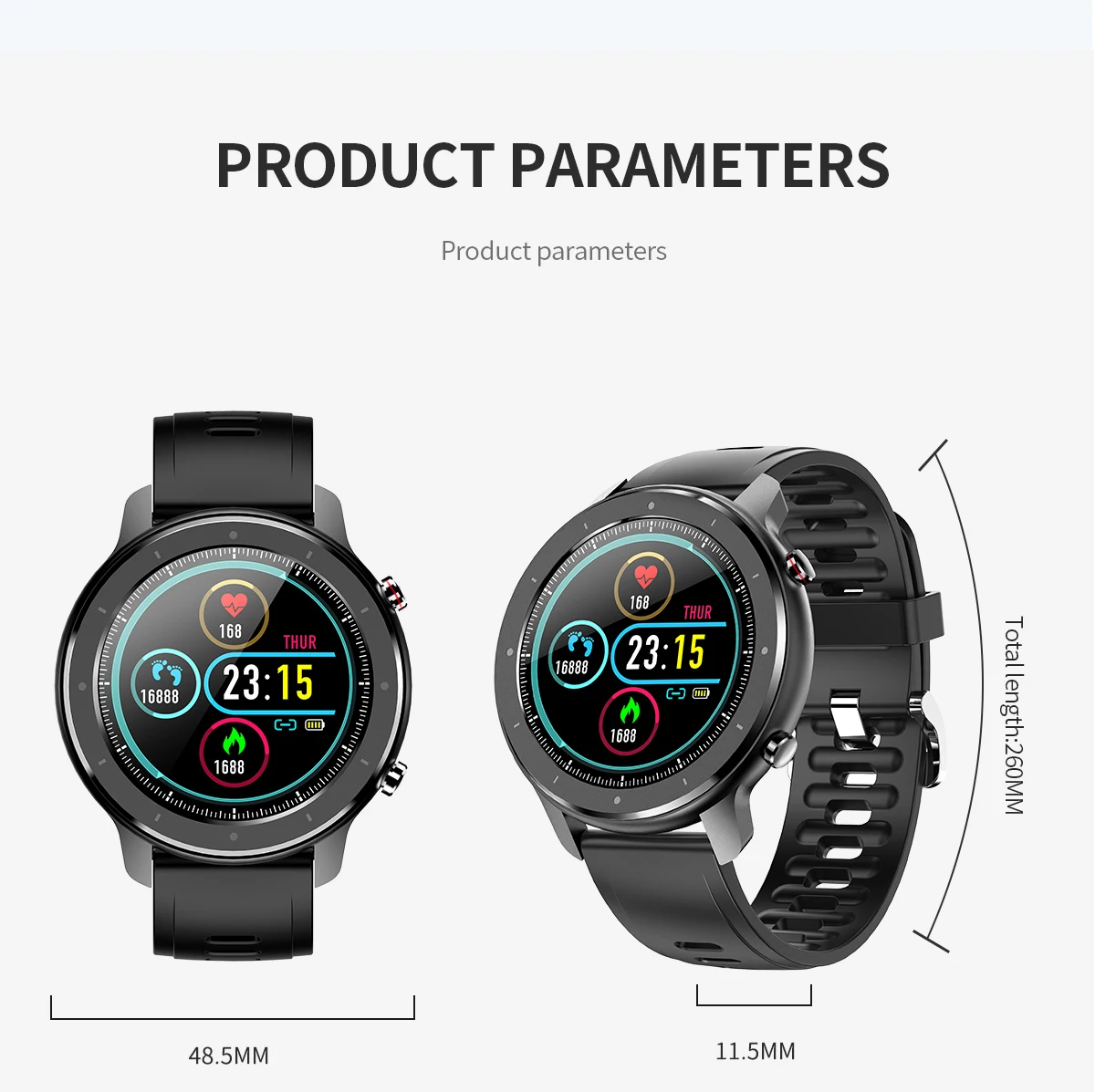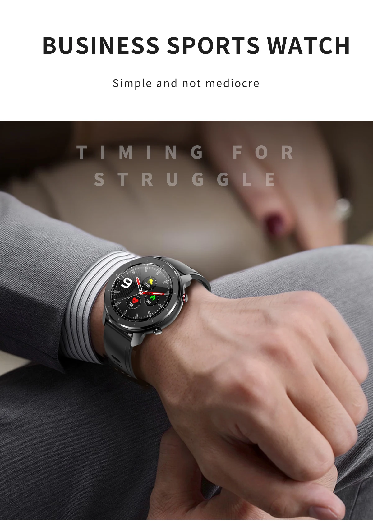 Полный круг Полный сенсорный экран часы, 24-часовой непрерывный сердечный ритм, черная кожа сердечный ритм (сверхнизкой потребеление энергии), металлический внешний вид, 200mA аккумулятор большой емкости ультра длинная Выдержка, сердечный ритм, измерять кровяное давление, мониторинг, мониторинг кислорода в крови, мульти спортивный режим.
