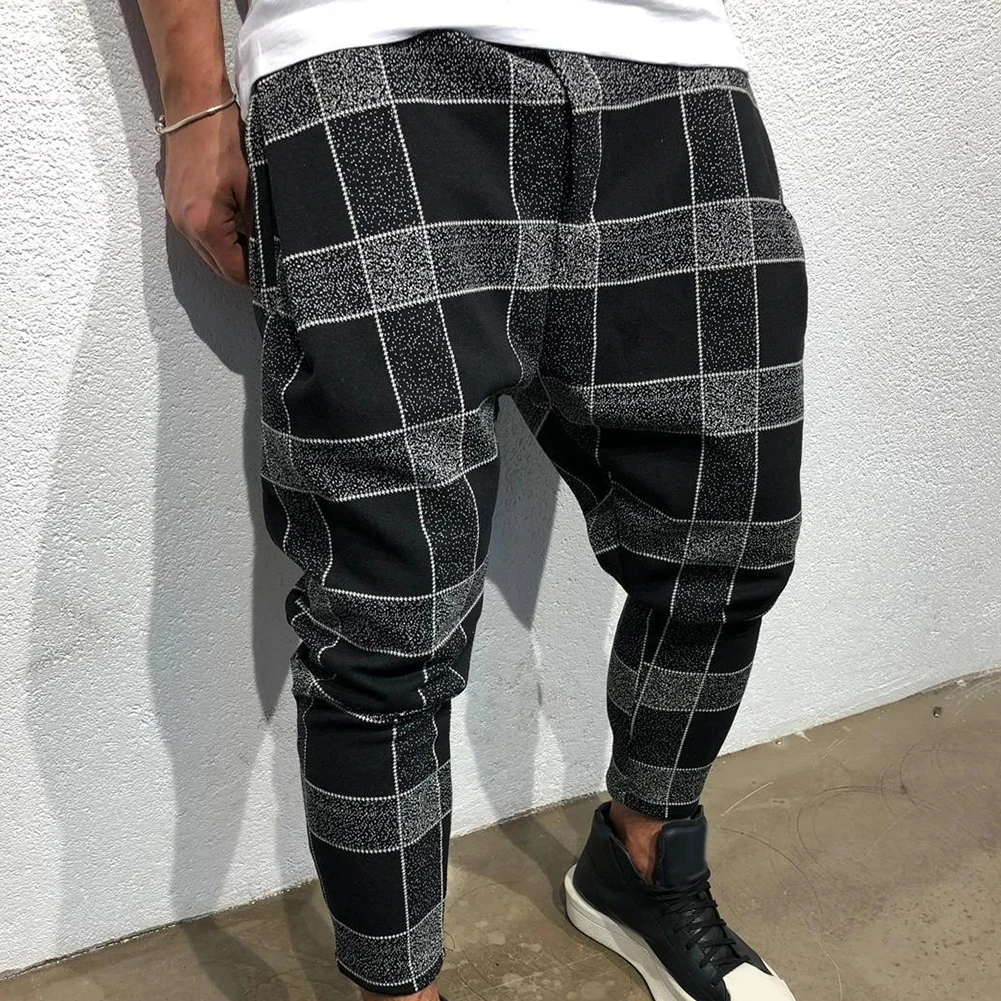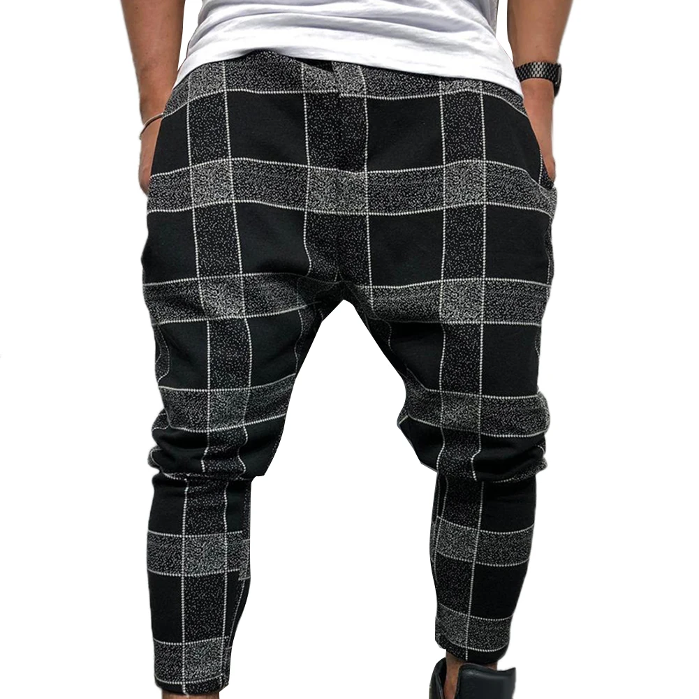 Мужские шаровары в клетку, дышащие льняные мешковатые брюки, повседневные брюки Харадзюку со средней талией, брюки в стиле хип-хоп