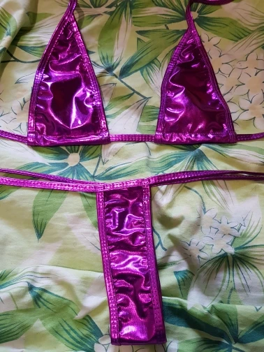 Женское привлекательное блестящее бикини с микро-лямкой на шее + стринги, купальник