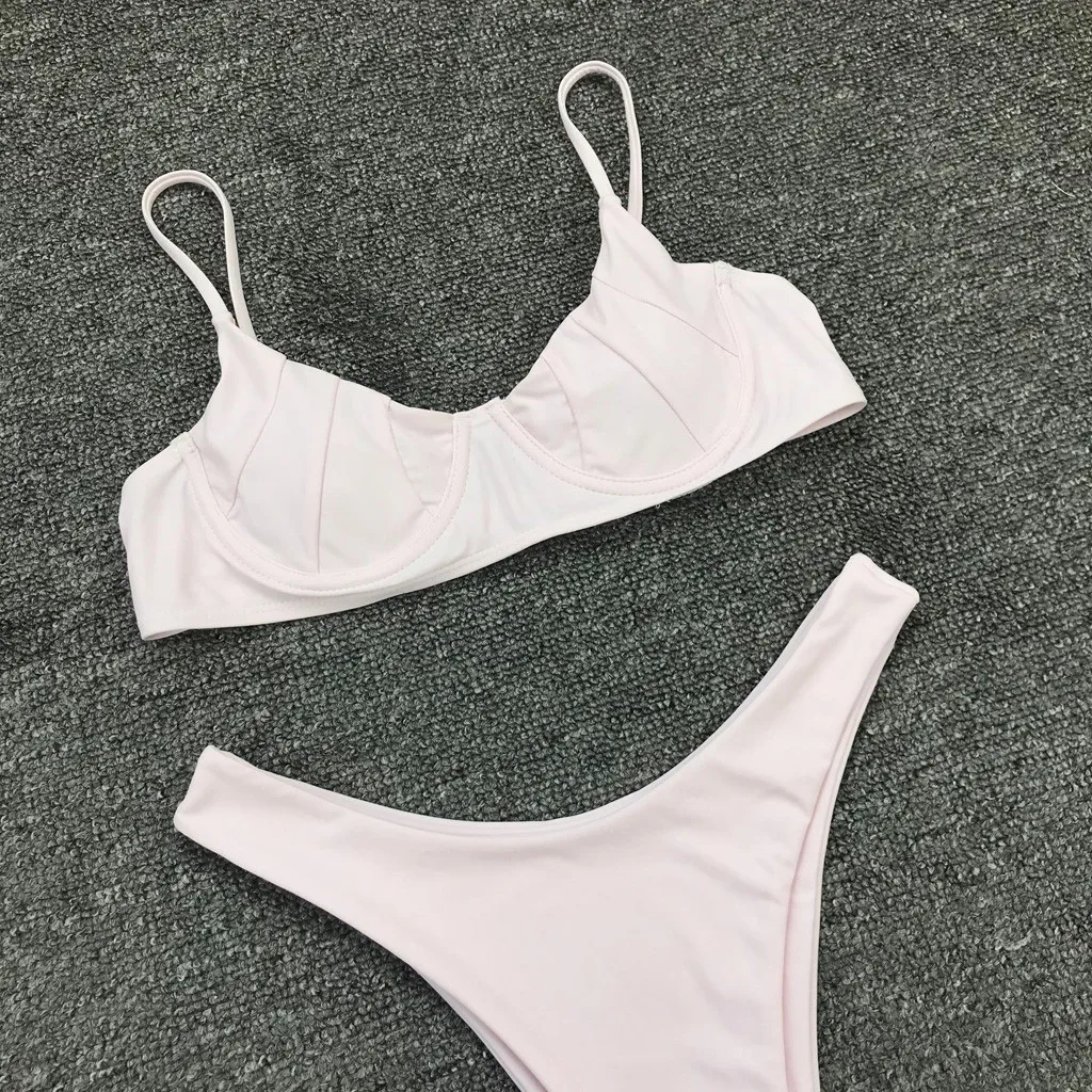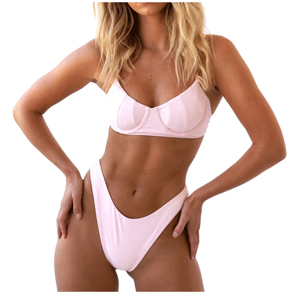 Женский сексуальный однотонный бюстгальтер с пуш-ап и подкладкой, пляжный комплект бикини, купальный костюм