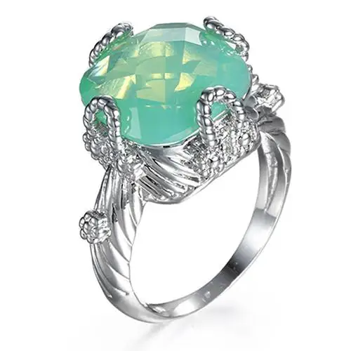 Зеленый Опал для женщин Свадебная вечеринка ювелирные изделия посеребренное кольцо Размер 6/7/8/9/10