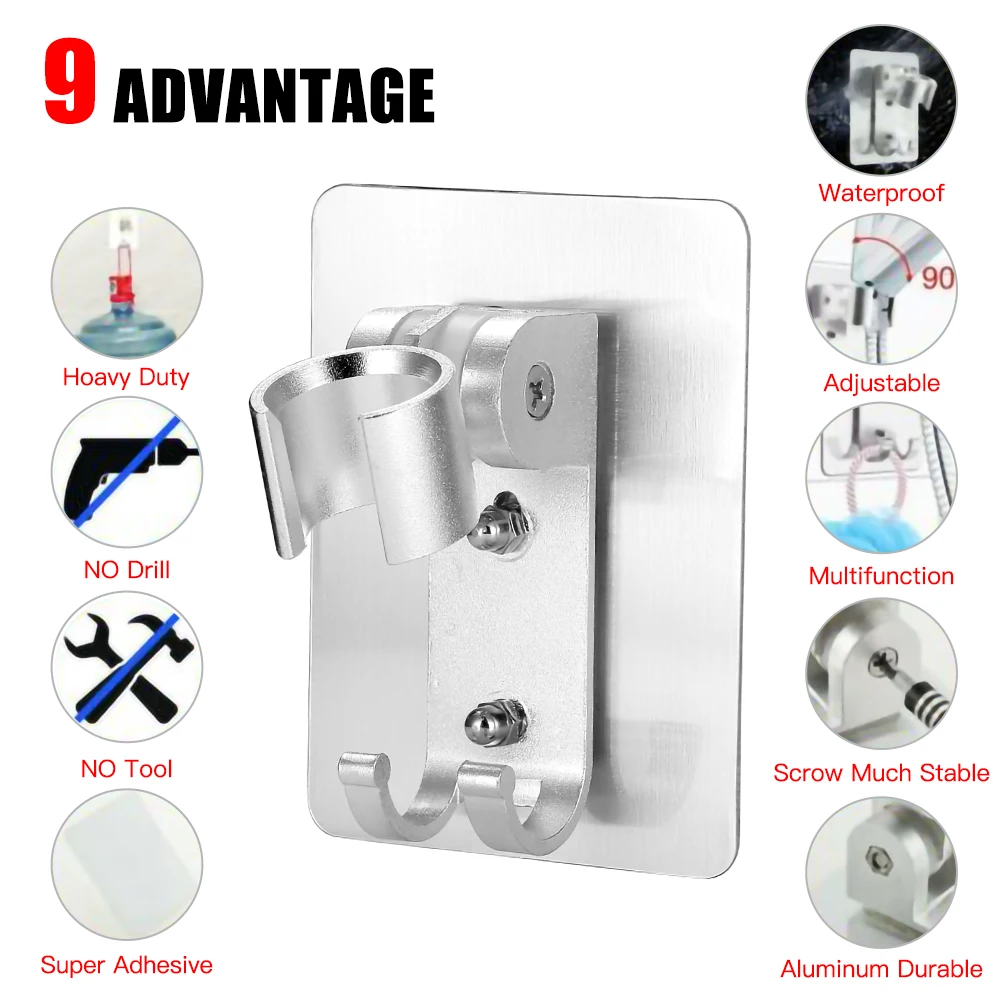 1. Этот регулируемый держатель для душевой головки не требует сверления, никакого вреда для стены