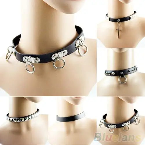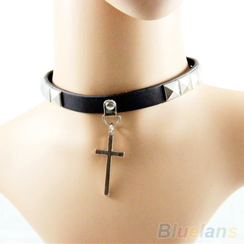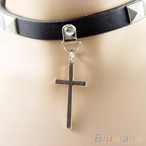 Панк готический черный чокер из искусственной кожи крест шип заклепки Пряжка воротник ожерелье