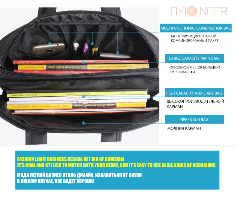 Внутренняя структура: компьютерные боковые части, мобильный телефон карман, сэндвич карман на молнии, карман для документов, карман на молнии