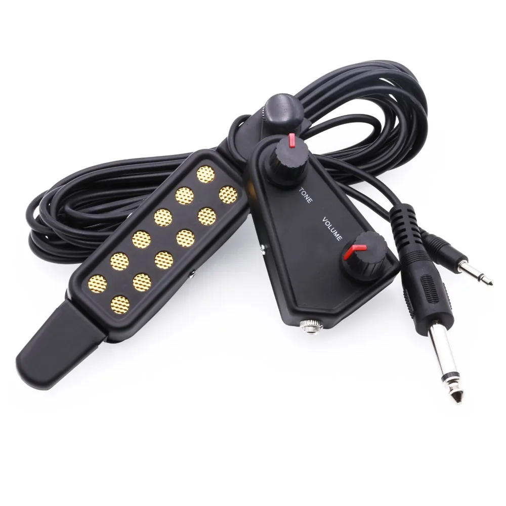 1.Acoustic guitar pickup with 12-hole magnetic transducer, can capture vibrations quickly.