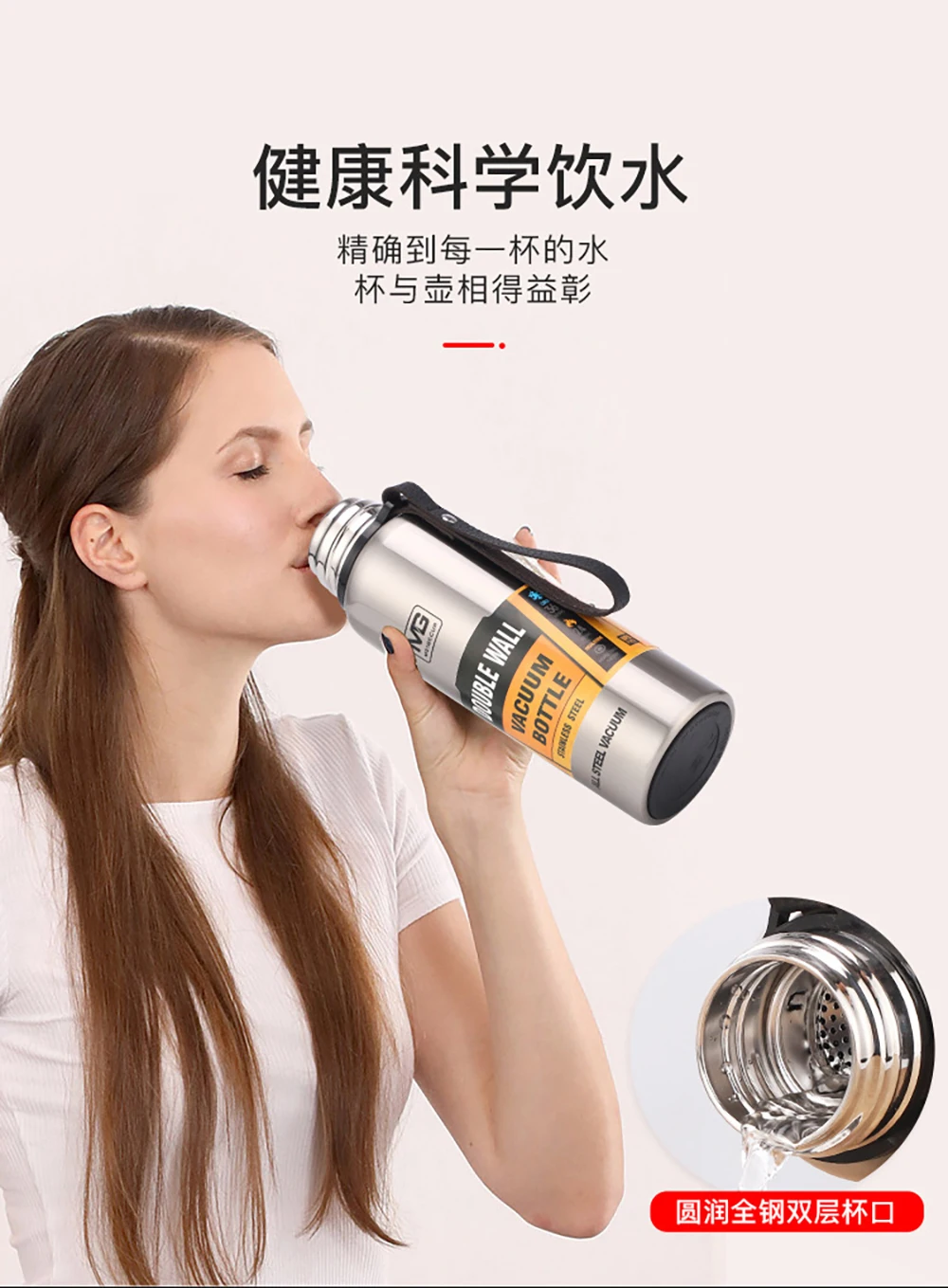 500-1500 мл Двойная Вакуумная фляжка из нержавеющей стали, термос, кружка для путешествий на открытом воздухе, вместительный термос, портативная кружка для путешествий
