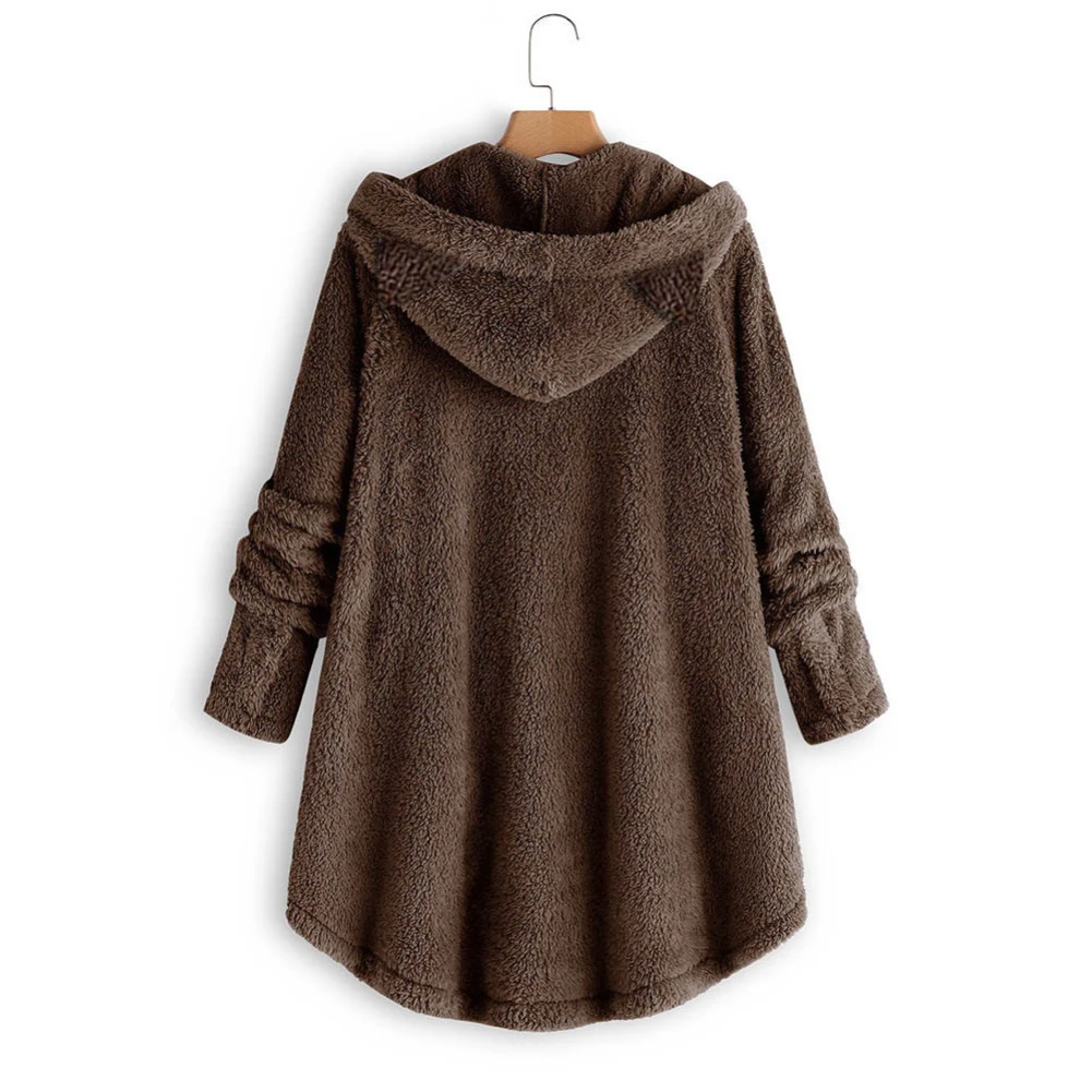 Зимнее женское пальто с искусственным мехом, роскошное длинное флисовое пальто с капюшоном и кошачьими ушками, свободное толстое теплое женское плюшевое пальто с пуговицами, шуба