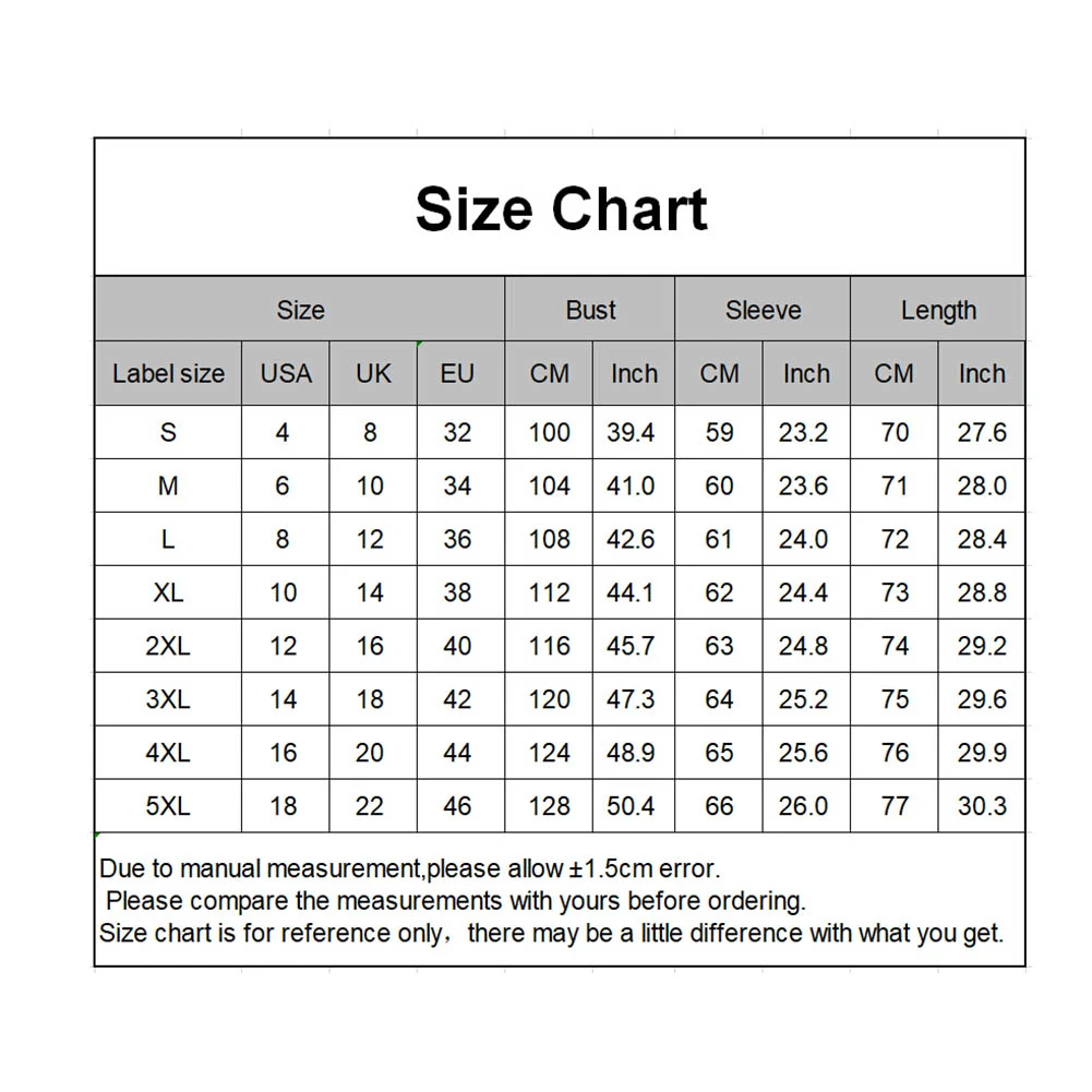 [Наш Размер 5XL] Обхват груди: 128 см/50,39 дюйма, длина: 77 см/30,31 дюйма, длина рукава: 66 см/25,98 дюйма (прибл.)