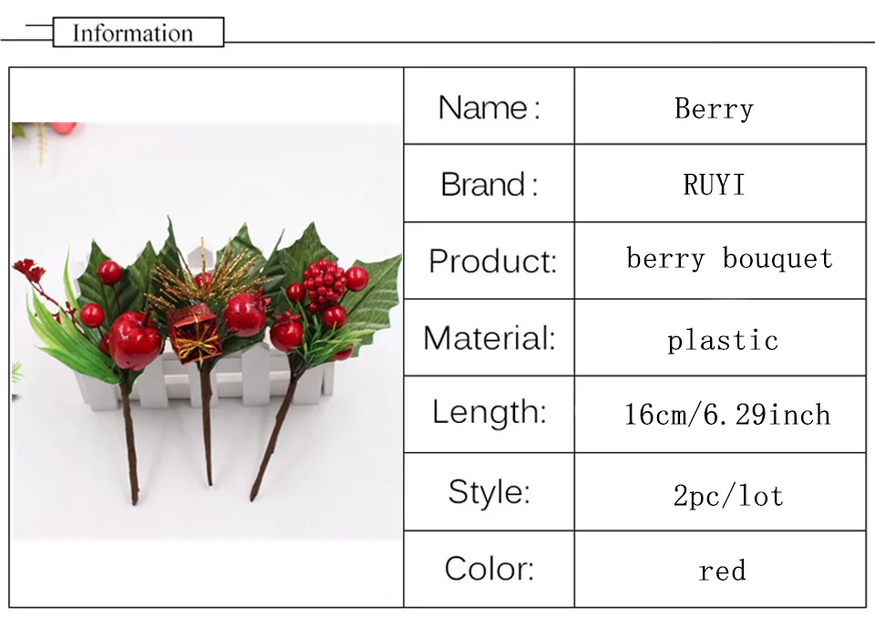 Название цветка: букет из искусственных ягод Бренд: RUYI Материал: пластик Цвет: красный Посылка: 2 шт. Размер: 16 см/6,29 дюйма Без вазы Примечание: 1. Если вам нужно смешать цвет, пожалуйста, оставьте сообщение, спасибо! 3. Цвет может немного отличаться в зависимости от вашего монитора. Возможны отклонения на 1-3 см вследствие измерений вручную.