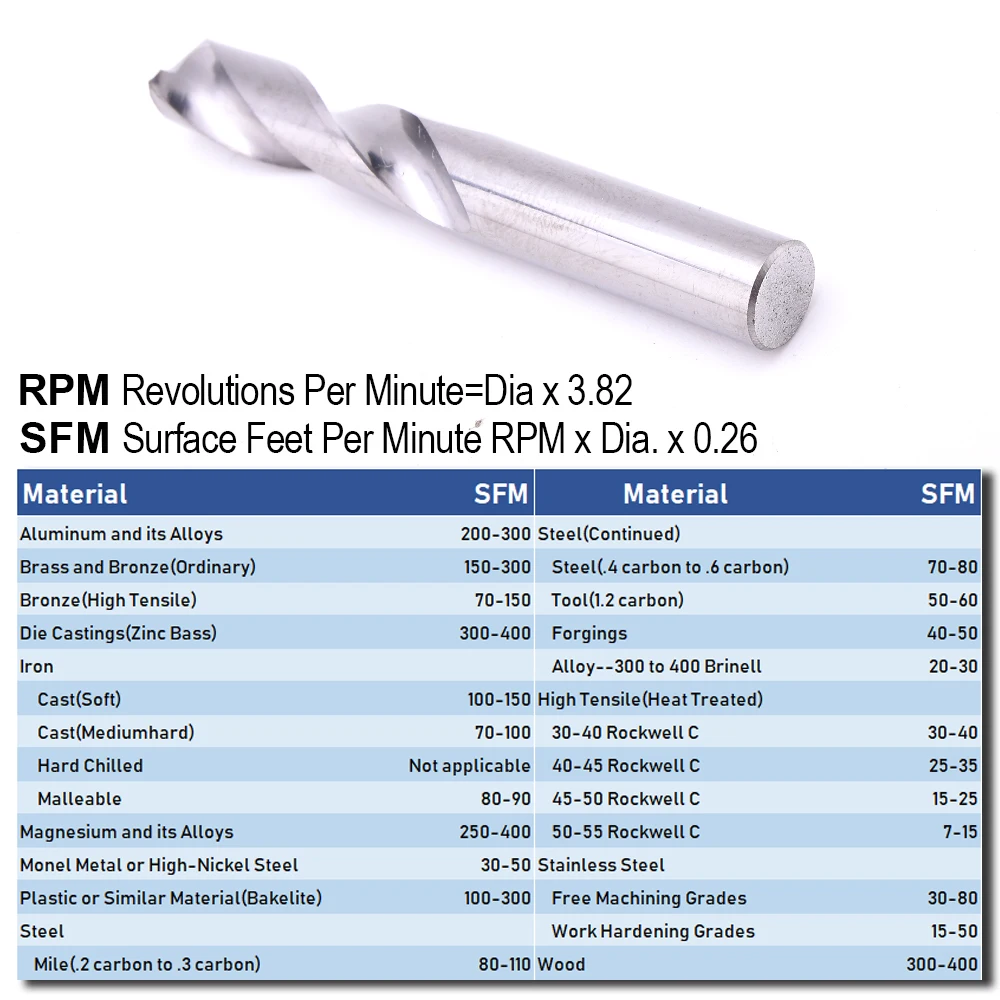 Точки быстрого резания 135 ° сами центрируются и быстро проникают при меньшем давлении. Не будет «ходить» или «бродить». Прямой хвостовик позволяет надежно удерживать и точно центрировать, подходит для стандартных буровых патронов и обычных круглых патронов. Должны использоваться и эксплуатироваться при надлежащем обороте для максимальной эффективности